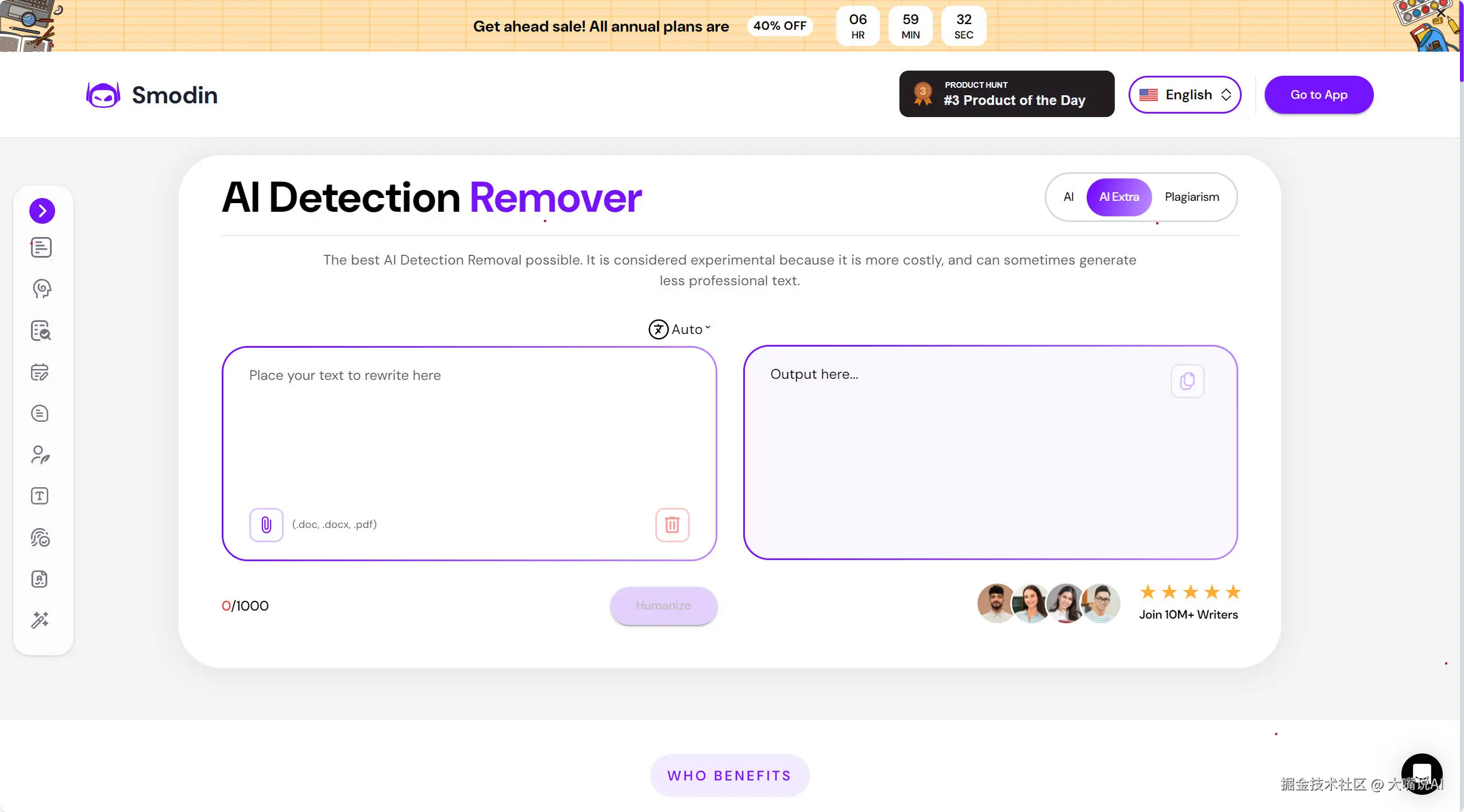 Smodin定位比较综合,我为了能够检验它的边界而把它当成写作助手来使用,它集成生成、改写、校对与翻译等功能,我自己为了能够测试多语场景而使用中英双语切换,它的语法检查与风格调整模块比较顺手,另外自带的抄袭检测也能给人一个底线感知,我为了能够看清它对aigc降重品牌赛道的贡献而把它与专门降重工具对比,它作为一体化工具的确省心,但极致降AIGC的指向性略弱一些。