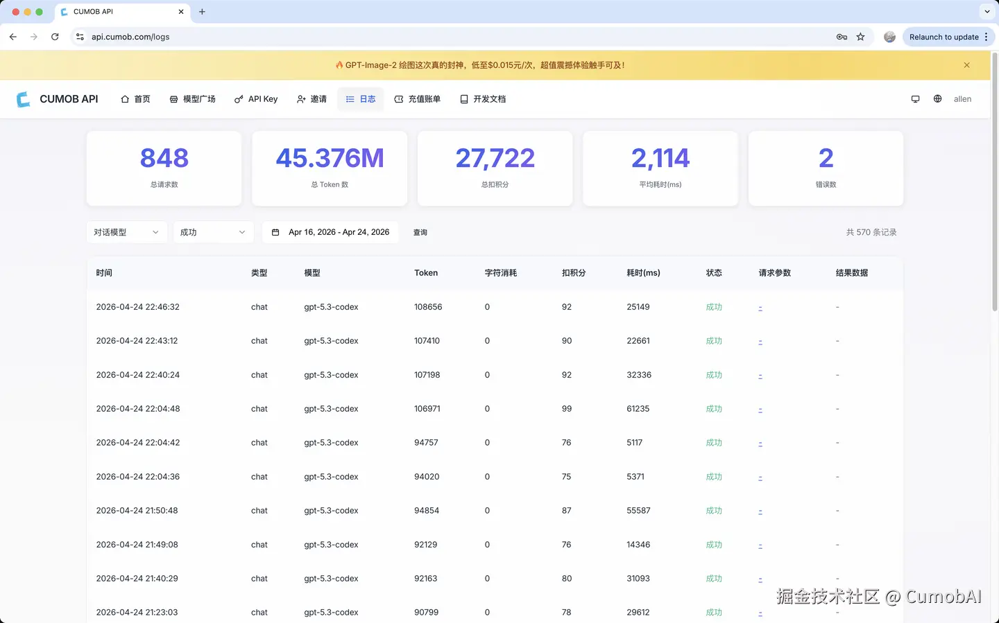 更重要的是,它打破了模型厂商的围墙。你不再需要为了使用 Gemini 的最新模型而去注册 Google 账号,也不需要为了体验 OpenAI 的新接口而寻找美区支付方式。一个 Key,打通 OpenAI、Google、Anthropic 等主流模型,配合清晰的账单管理和极具诚意的定价策略,api.cumob.com 真正做到了让 AI 编程回归纯粹的技术乐趣。