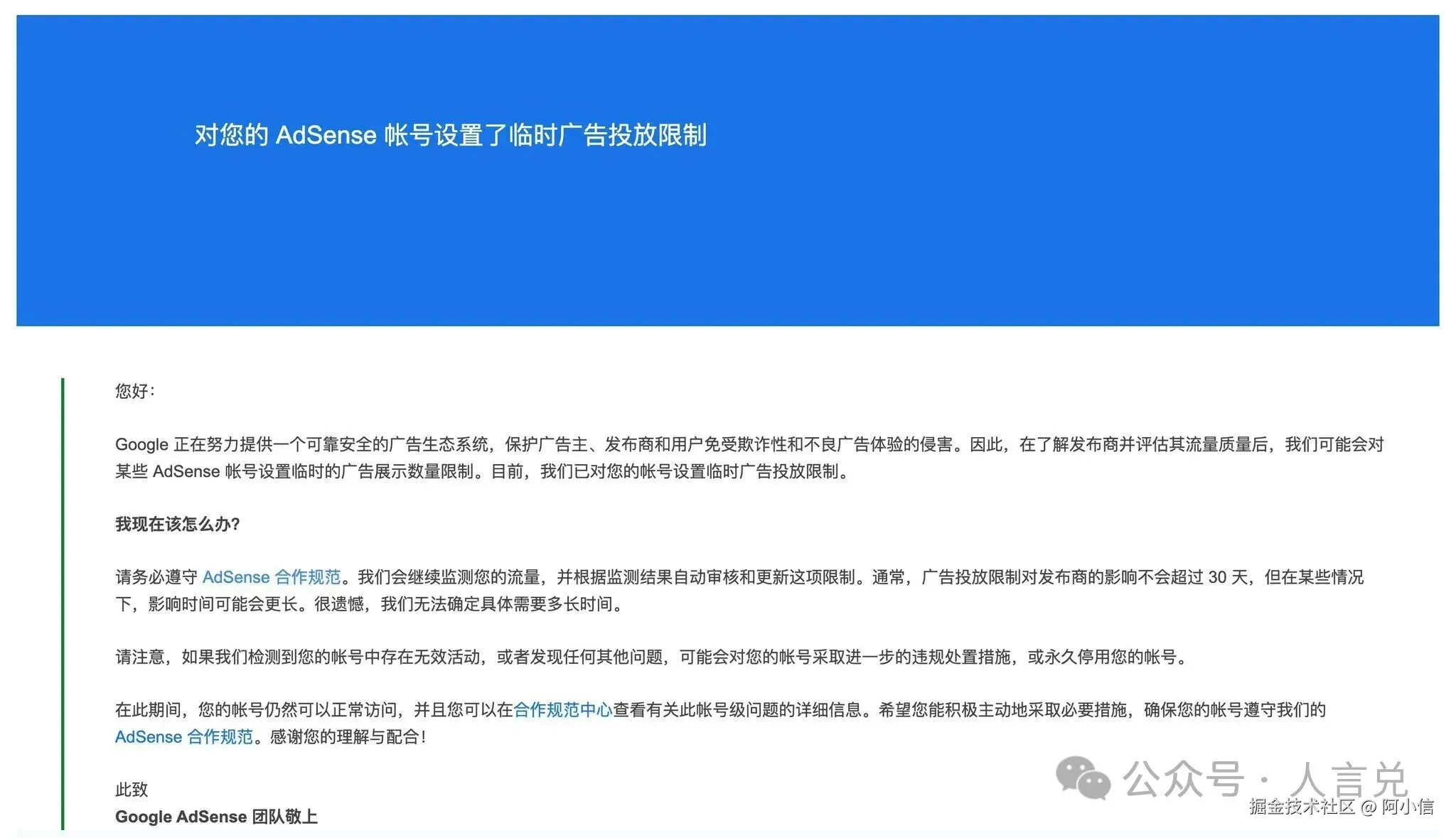 我的谷歌广告账号由于存在无效流量导致被限制广告投放数量,经过半年时间的不断尝试,我的Google AdSense账号今天终于恢复正常了!个人纯经验分享,个人观点仅供参考,本文为微信付费阅读,感谢支持。