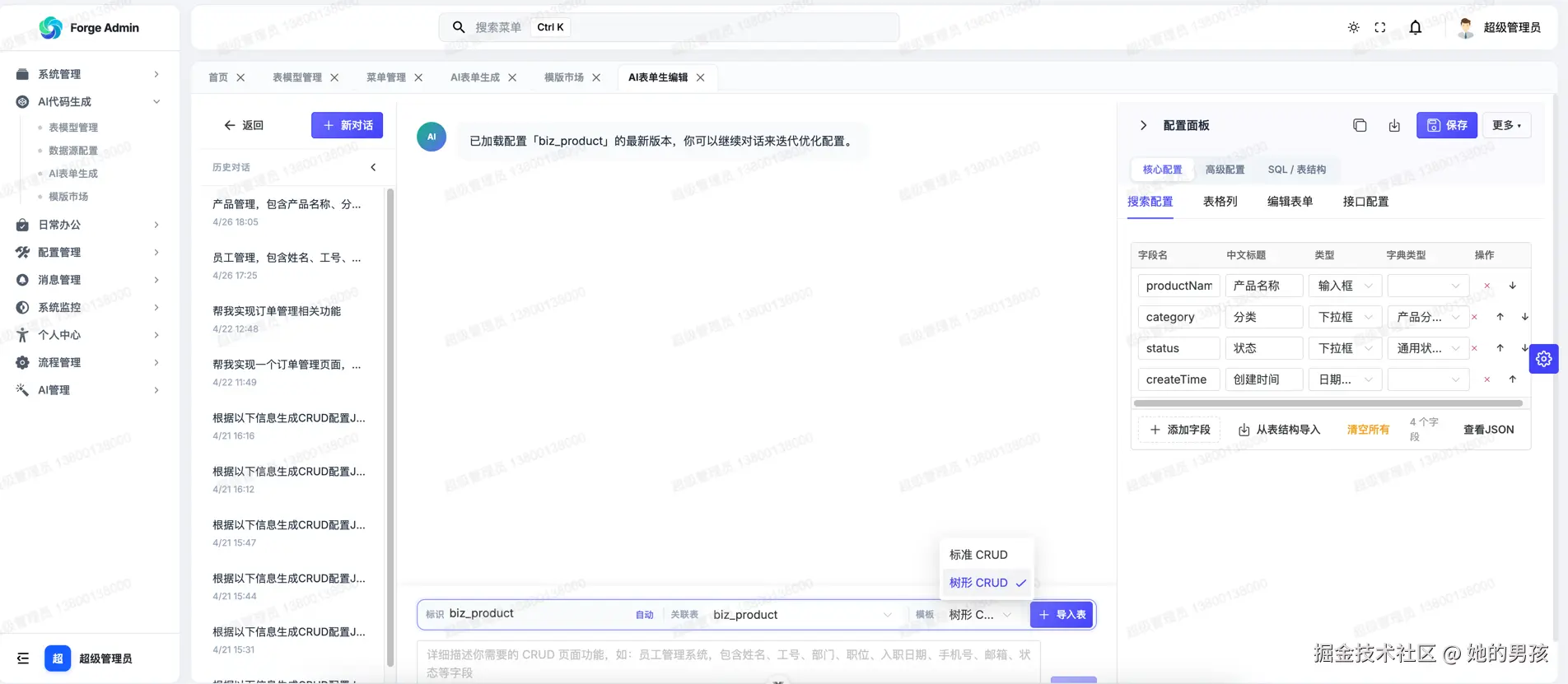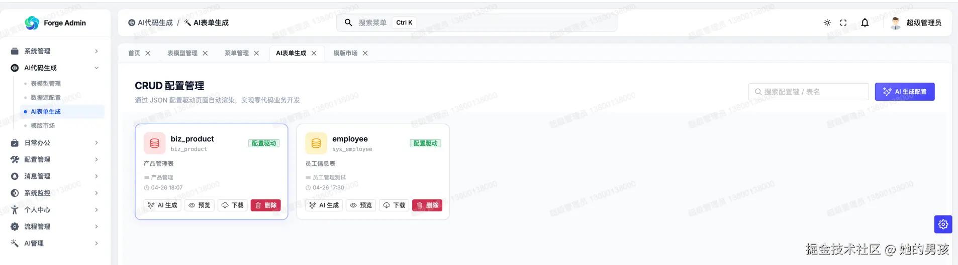 ✅ Forge Admin AI 代码生成