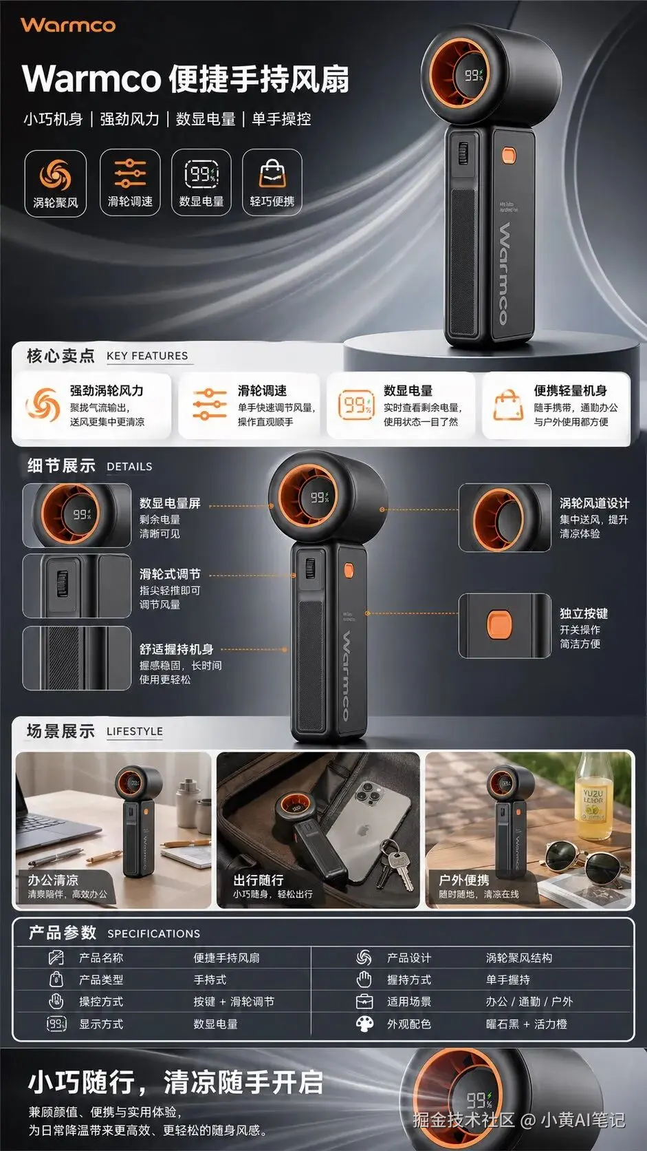 便携手持风扇详情页