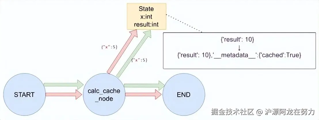缓存的实现原理很简单:当节点使用 CachePolicy 配置后被调用时,LangGraph 会根据节点的输入(通常是对状态进行哈希计算)生成一个唯一的缓存键,并将执行结果存储起来。下次遇到相同的缓存键时,框架会从缓存中读取结果,而不是重新执行节点。输出中还会通过 _metadata_ 字段标记 cached: True,方便你追踪哪些结果来自缓存。