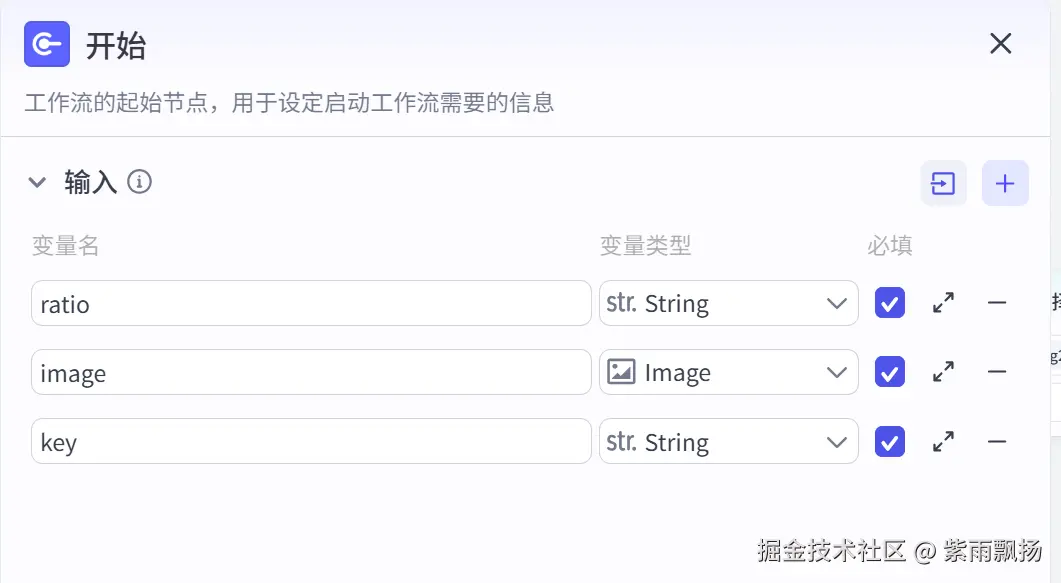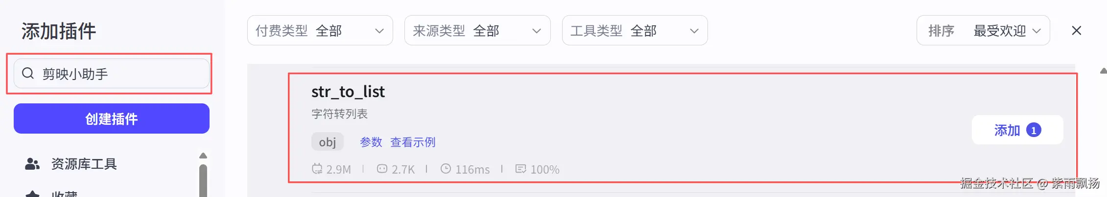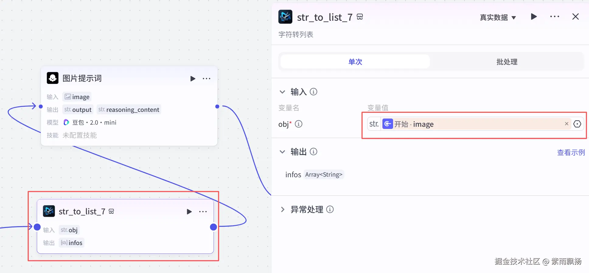 在开始节点后添加一个米核AI的 【剪映小助手】 的 【str_to_list】节点->设置参数;