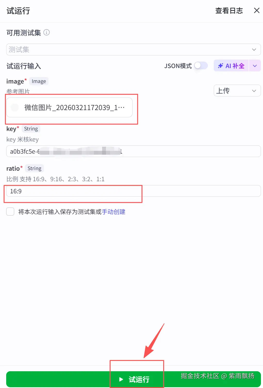(1)点击试运行,按要求输入参数,带星号的是必填。