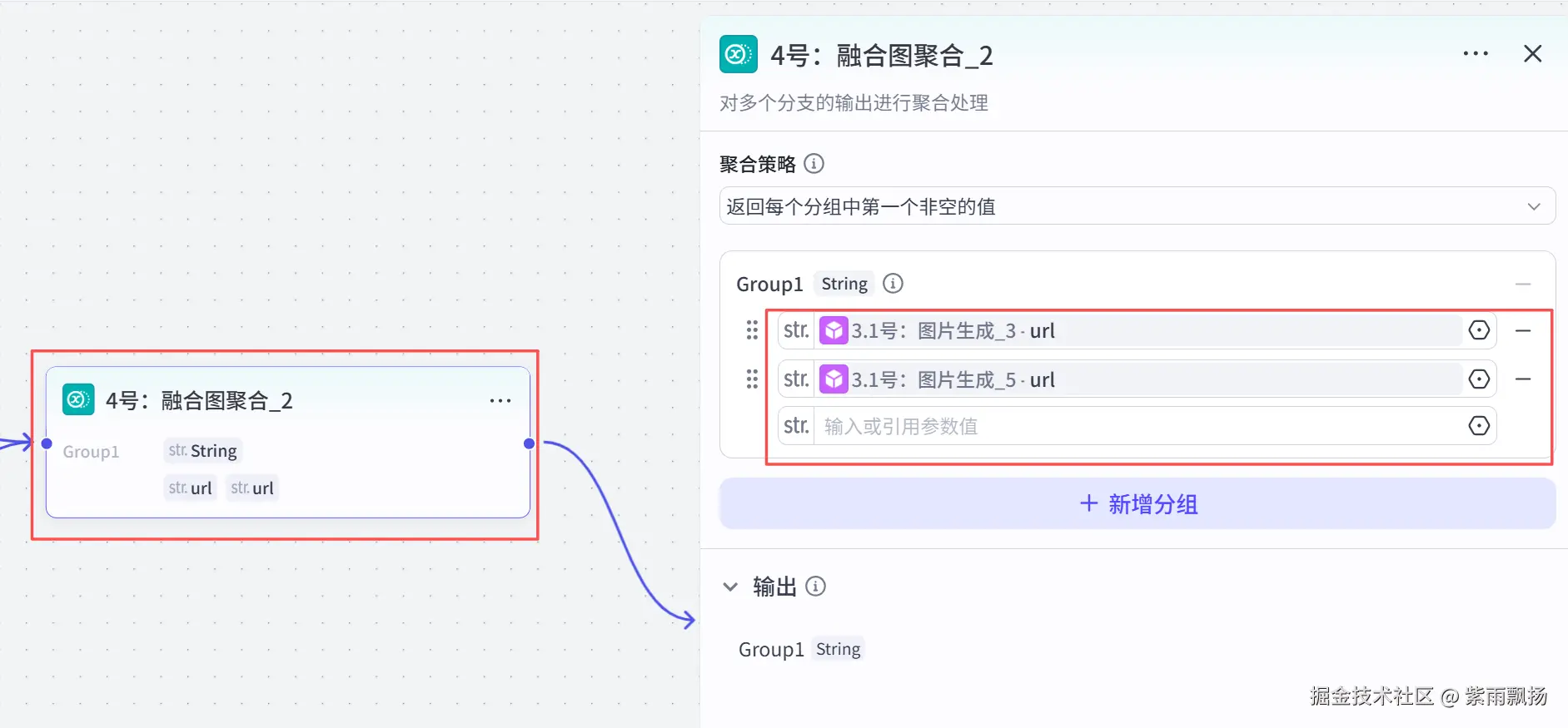 在3.1号:图片生成_5节点后添加一个扣子官方的 【变量聚合】节点->重命名为4号:融合图像_2->设置参数;