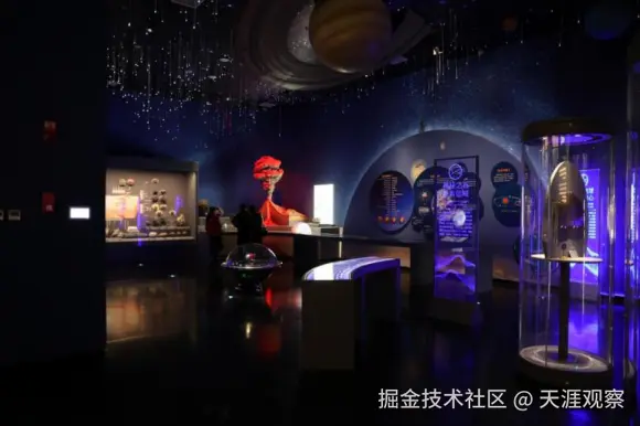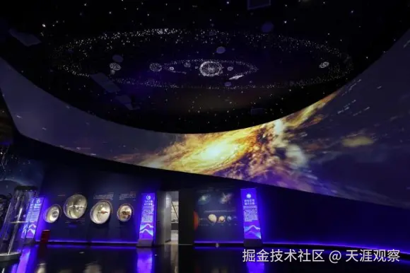 如“天地源疆展厅”:北京一彩以“宇宙大爆炸”为灵感原点,通过火山喷发动态模型与环绕式星空幕墙,配合低频声波震动装置,让观众身临其境感受行星撞击的震撼。陨石展区采用立体球形展柜,令新疆特有的铁陨石傲立于绘有星光的展板之中,凸显“天外来客”的神秘感。