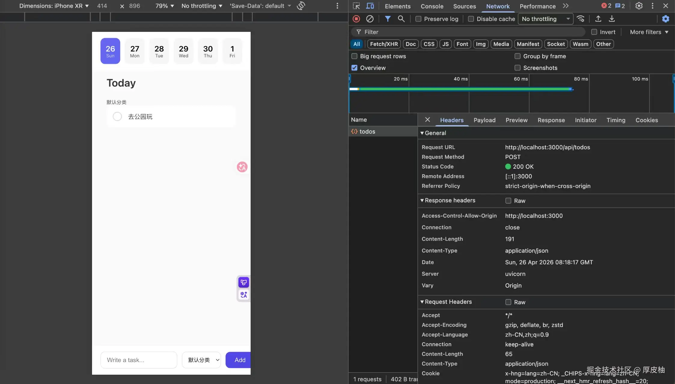可以看到已经按照 figma 设计稿还原页面,并且后端服务也可以正常使用