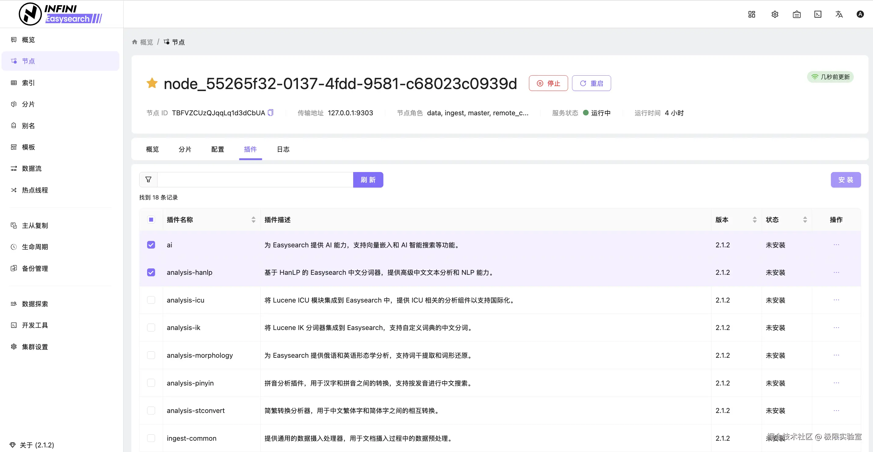 - 启动、停止、重启 Easysearch 节点