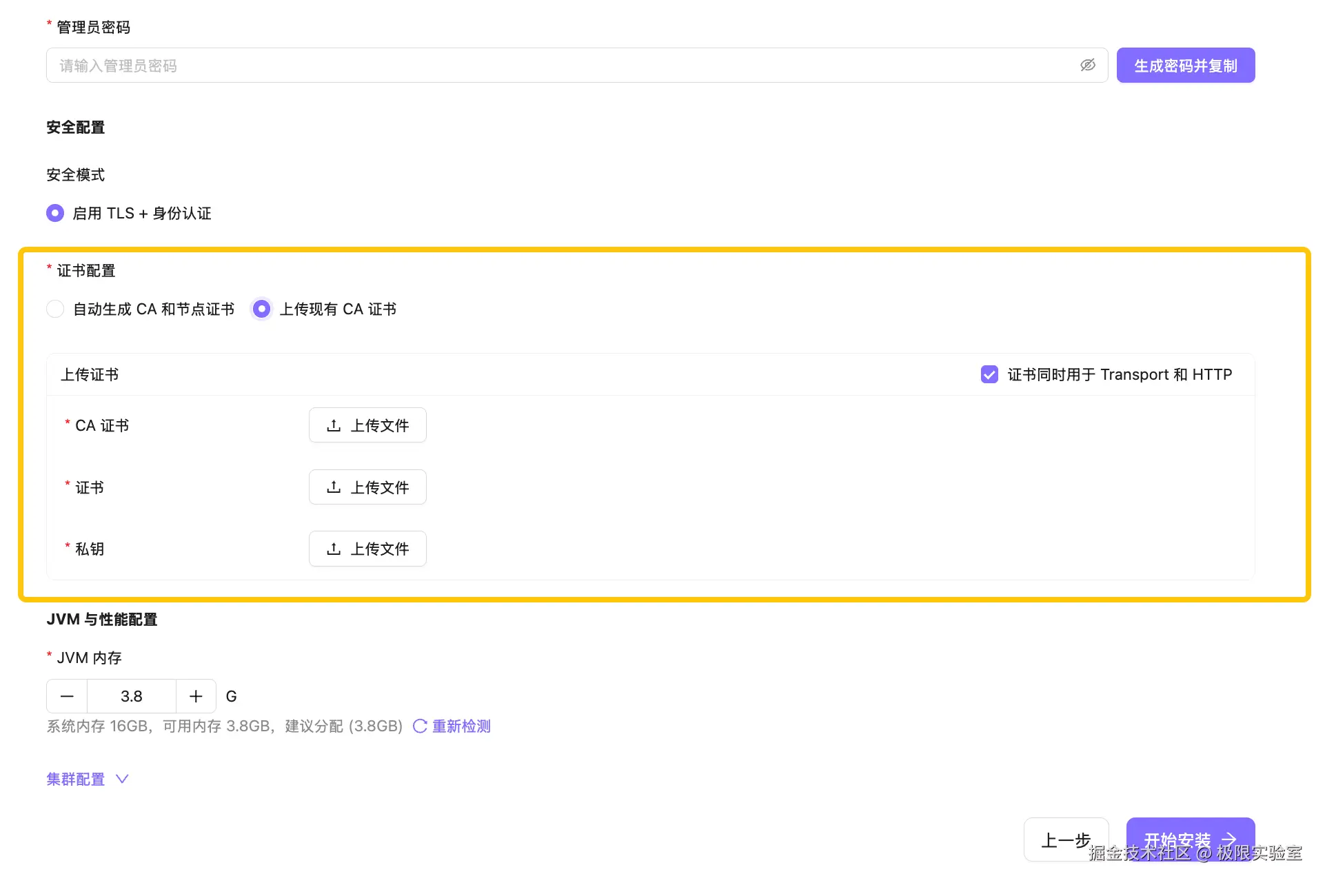 - 手动上传(共享):为 HTTP 和节点通信层提供同一套证书