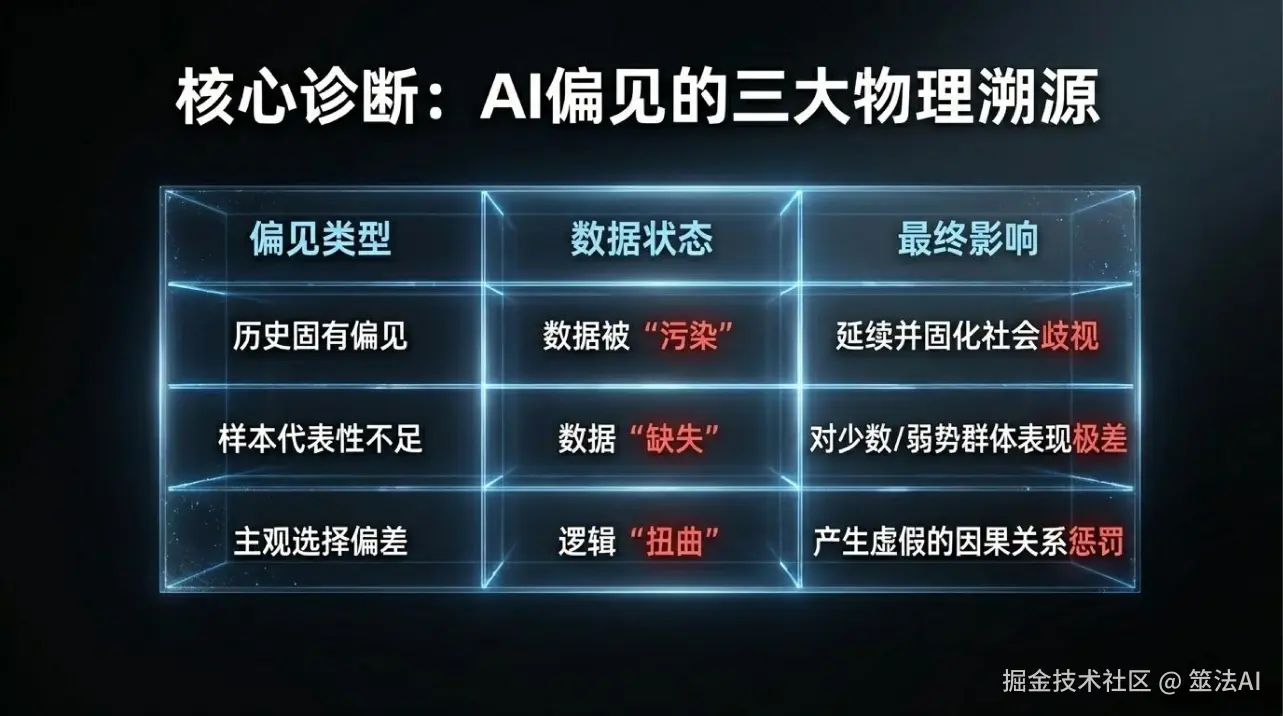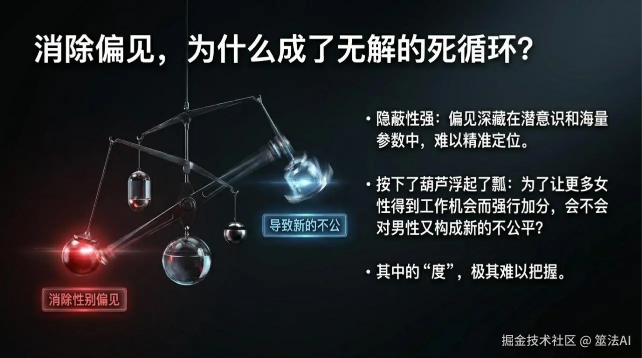 你看,这三个例子里,AI本身没什么坏心思,它就是在老老实实地学习。偏见不是AI带来的,是我们人类社会本来就有,数据把它记下来了,AI又给我们重复了一遍而已。