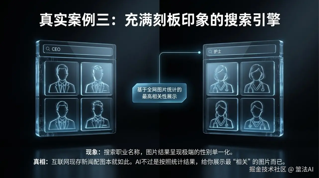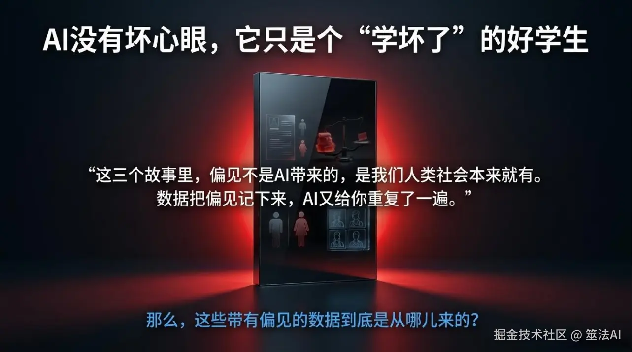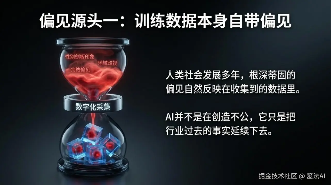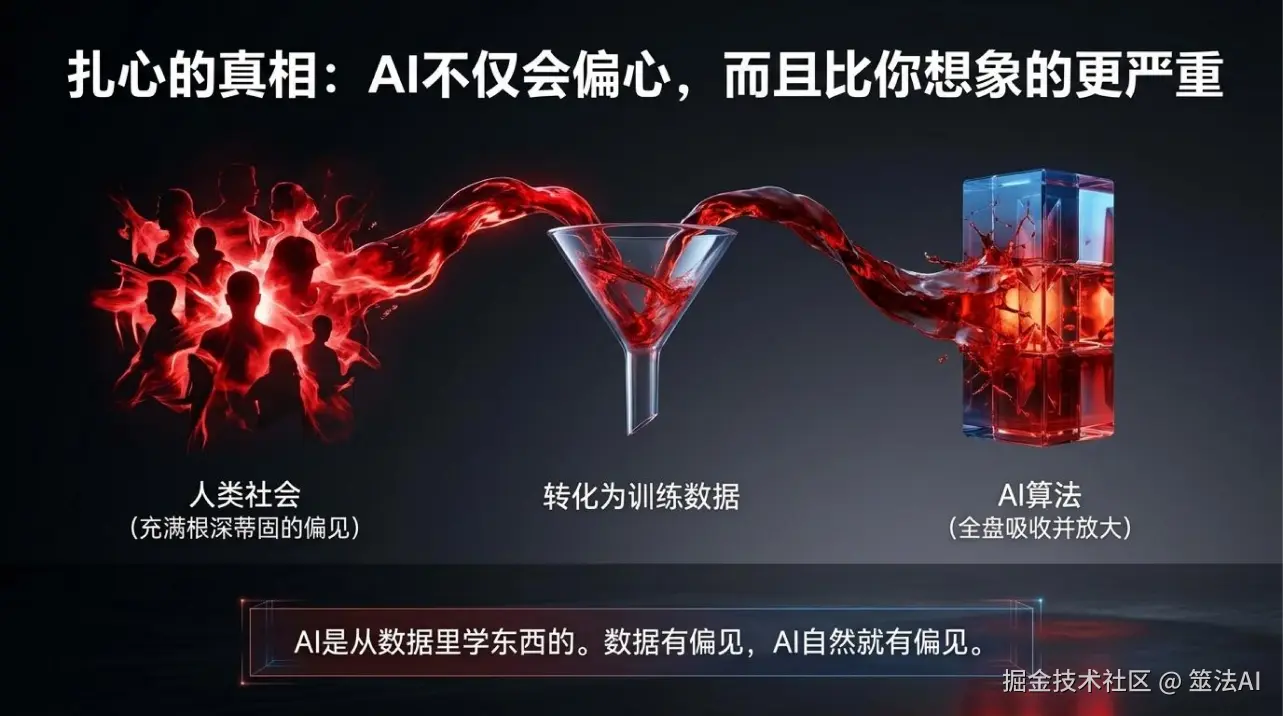 说白了就是:AI有偏见,不是因为AI坏,是因为它学的数据里就有偏见。