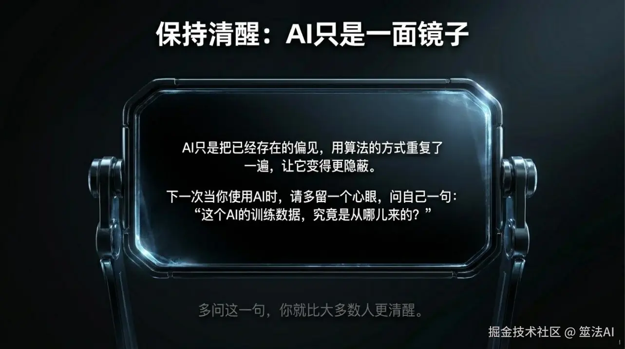 但也不是说我们什么都做不了。至少我们可以做到一点:时刻意识到AI可能会有偏见,然后在设计、训练AI的时候,多问自己一句——这个数据有没有问题?这个设计对所有人都公平吗?