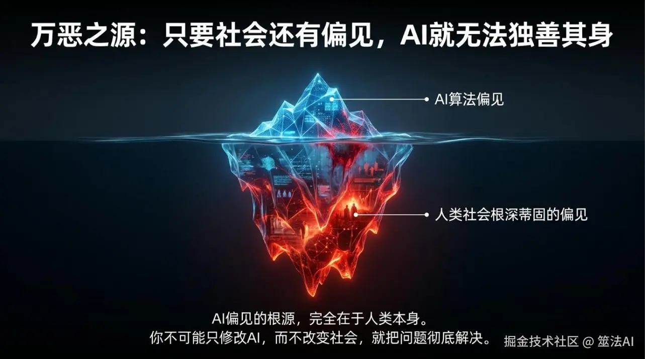 最关键的是,AI偏见的根源是人类社会的偏见。只要社会上还有偏见,数据里就会有,AI就会有。你不可能只改AI,不改社会,就把这个问题彻底解决了。