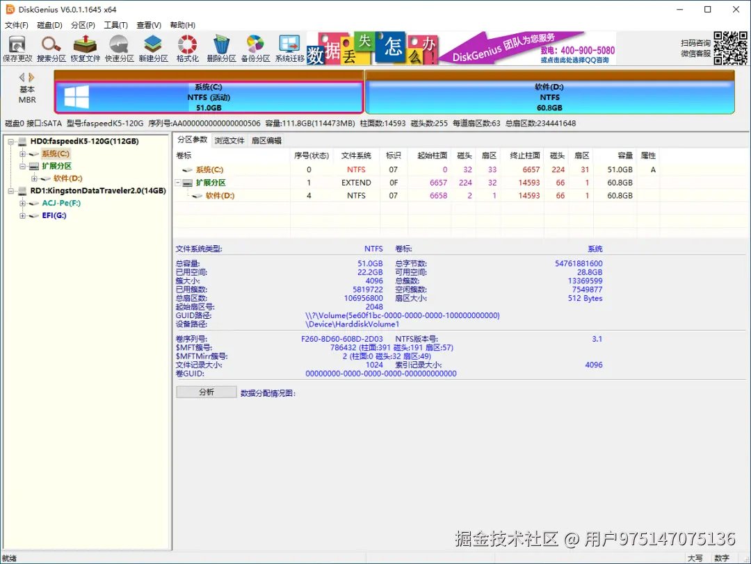 DiskGenius主要以硬盘分区管理为人所熟知,但其实它的功能不止于此,它还有数据恢复、备份还原、坏道检测和恢复等。