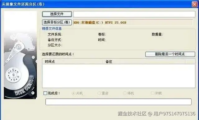最后选择“系统镜像文件的备份文件”,接着点击固态硬盘的主分区,就可以将刚才备份好的系统恢复到固态硬盘了。