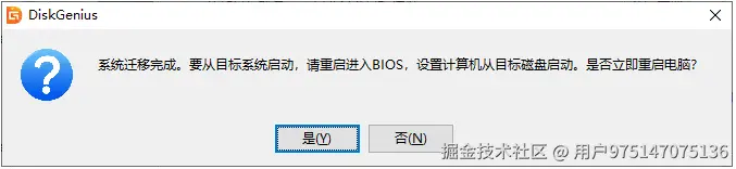之后,会进入完成提示界面,重启电脑,进BIOS,设置启动顺序之后,就完成系统迁移的所有操作了。
