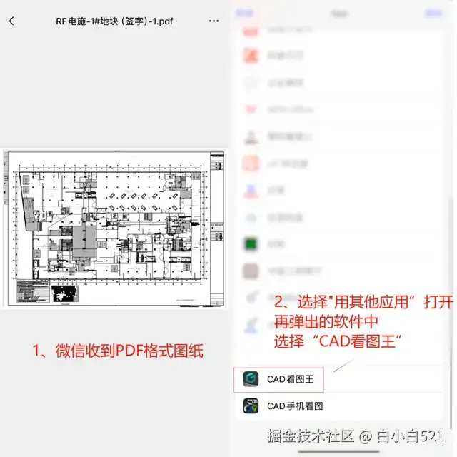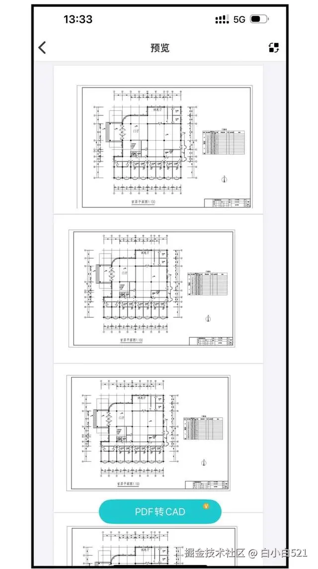 解决方案:点开微信/QQ收到的PDF格式图纸,点击用其他应用打开,再选择CAD看图王移动版,图纸跳转到APP内,出现PDF转CAD按钮,点击该按钮后图纸就添加到转换列表,等待转换即可;