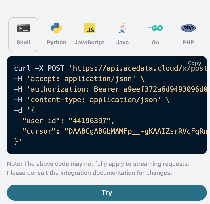 curl -X POST 'https://api.acedata.cloud/x/posts' \