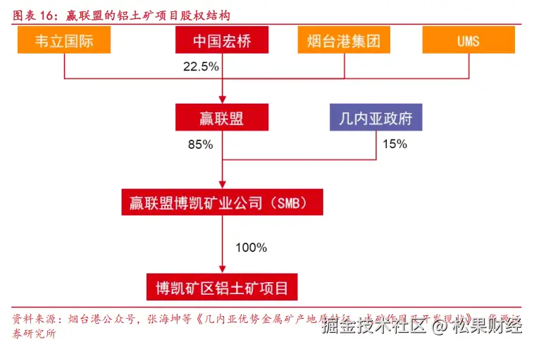 面向上游铝土矿环节,中国宏桥作为赢联盟成员之一,深度参与了几内亚博凯铝土矿项目。股权穿透过,中国宏桥实际间接持有博凯矿区铝土矿项目约两成的股权。2025年赢联盟铝土矿出口量7152万湿吨,韦立国际预计今年铝土矿出货量将突破9000万吨,同比增长超26%。