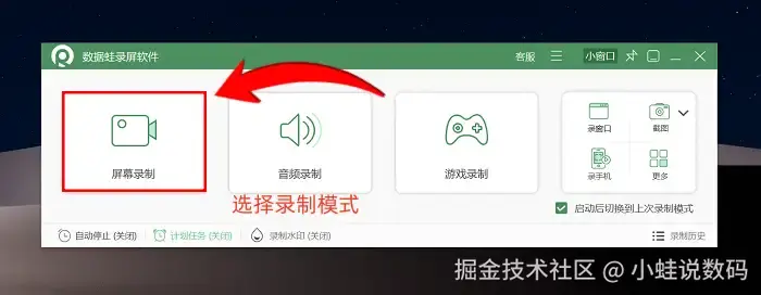以下是数据蛙录屏软件的具体使用步骤: