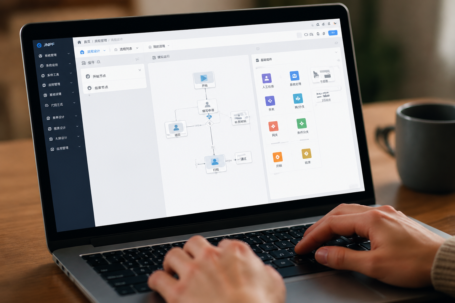 我认识的一家做供应链SaaS的公司,技术负责人跟我聊过他们用JNPF的经历。他们团队不到十个人,业务部门的需求一个接一个,传统开发根本忙不过来。用了JNPF之后,他们把那些标准化的表单、审批流、报表直接用平台的可视化方式搭建出来,三分之二的重复工作被自动化了,剩下的精力全部投入到核心算法和业务逻辑的精雕细琢上。“以前我们是一个人干三个人的活,现在是三个人想一个人的活儿。”他笑着说。