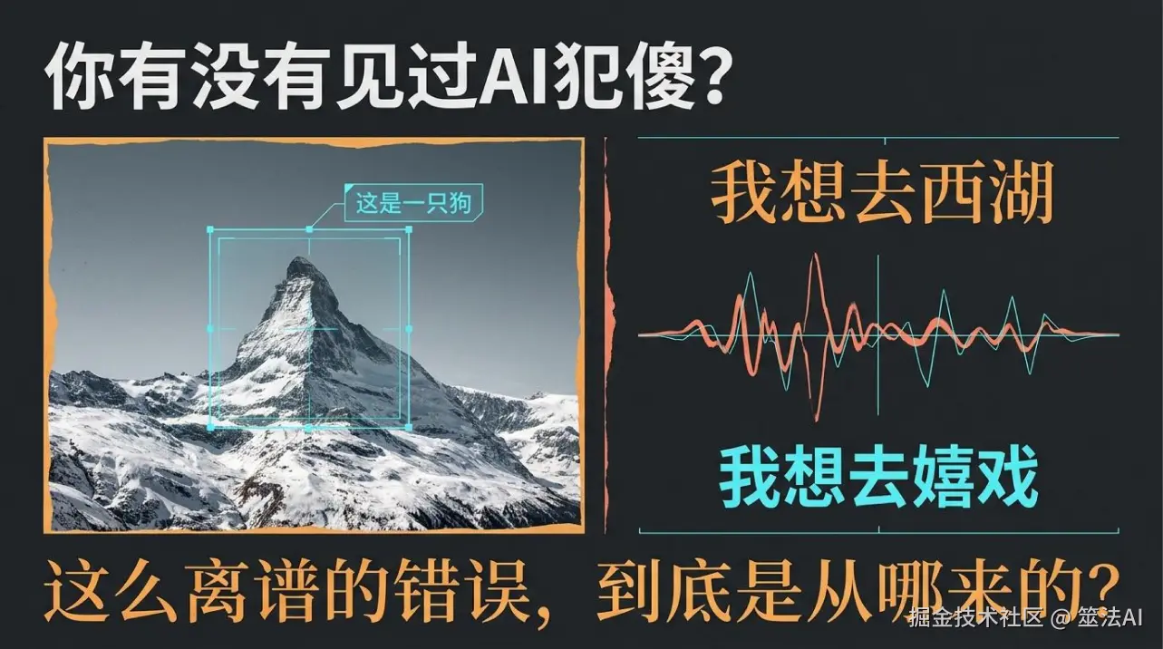 比如给它看一张雪山照片,问上面有什么,它硬说”这是一只狗”。用语音输入法说”我想去西湖”,它能给你打成”我想去嬉戏”。