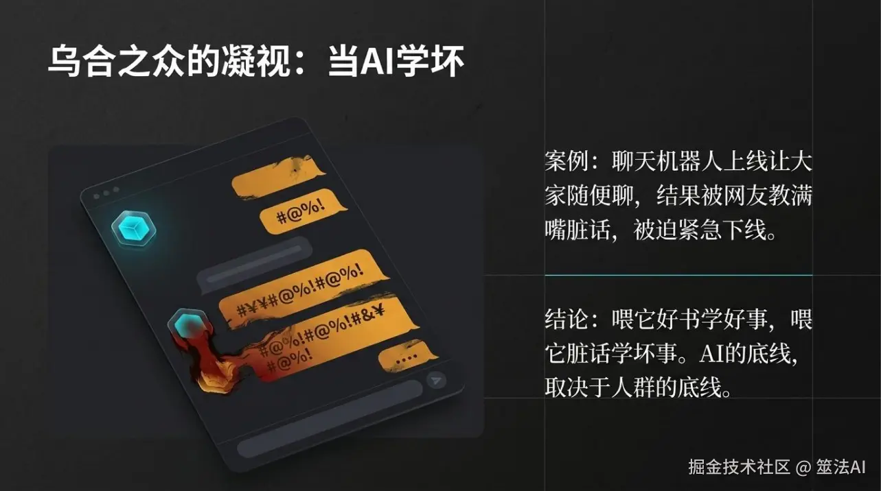 说白了,AI学什么,完全看你给它喂什么数据。喂它好书,它就学好事;喂它脏话,它就学坏。就这么简单。