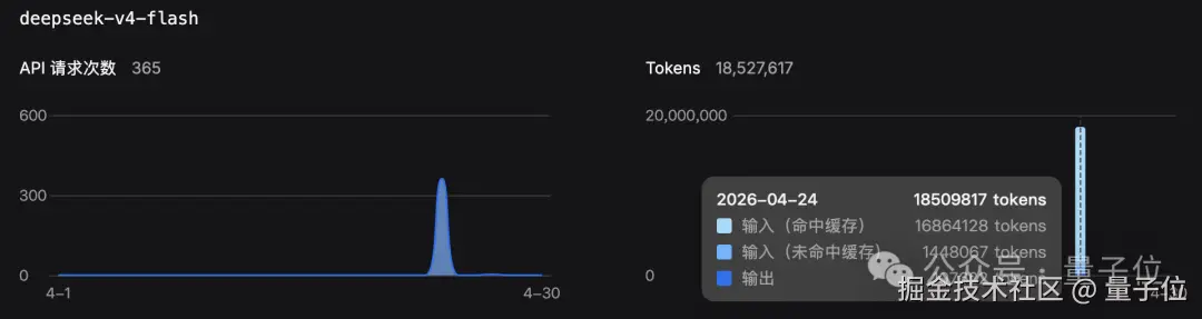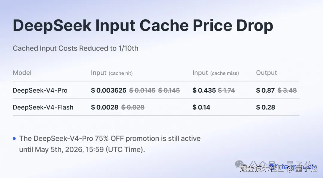 而且 DeepSeek 的缓存优化本来就做得好,V4-Pro 的输入缓存命中率约 95%,V4-Flash 约 91%。