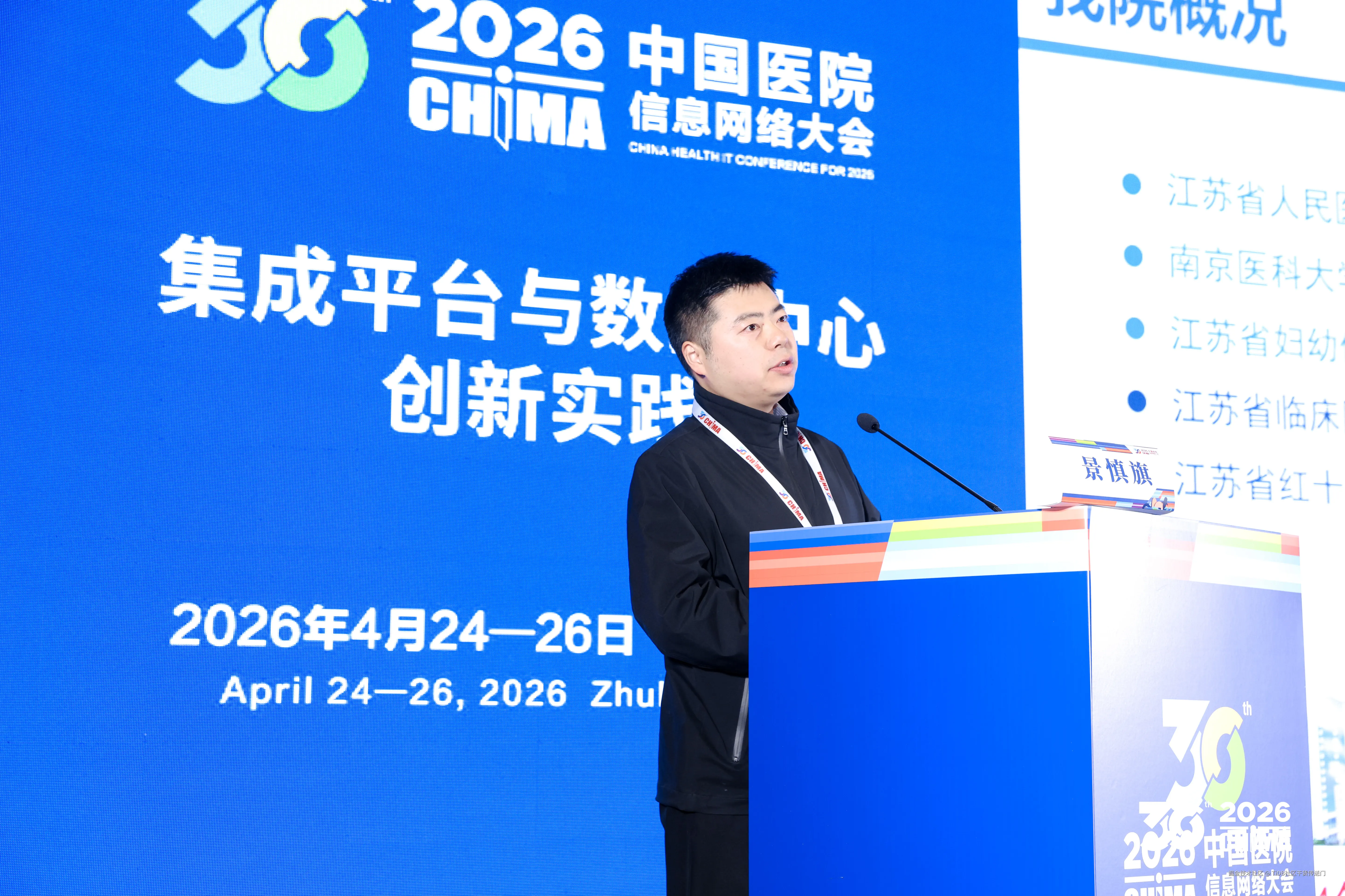 在本次大会现场,江苏省人民医院信息处景慎旗主任分享了医院在数据底座与智能化应用方面的实践路径。