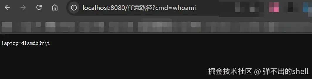 触发命令(Filter 拦截所有请求,任意路径带上 cmd 参数都能触发):