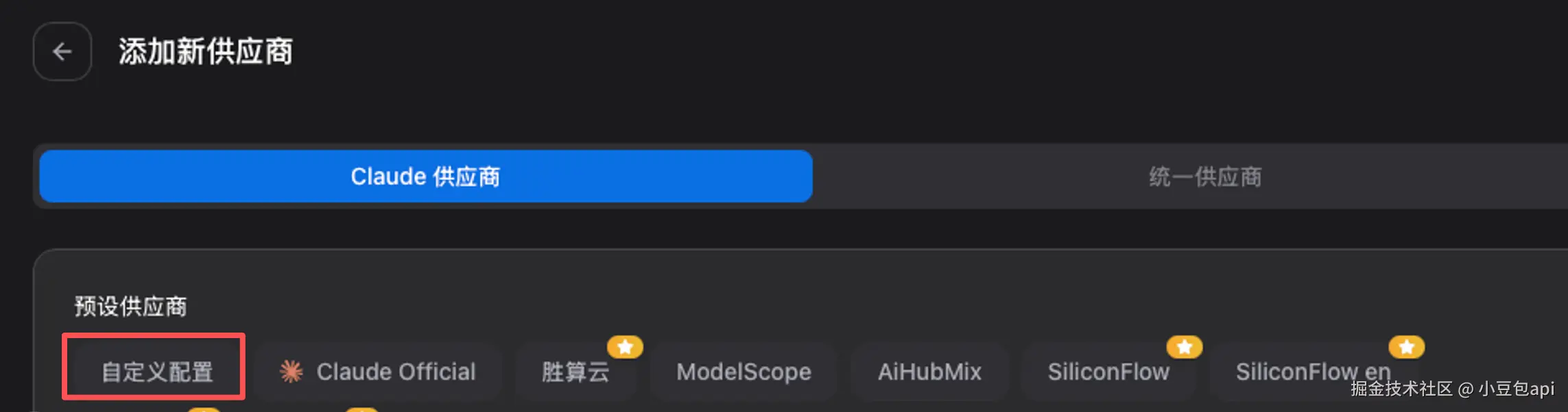 打开cc- switch ,点击右上角加号,选择“自定义配置”。