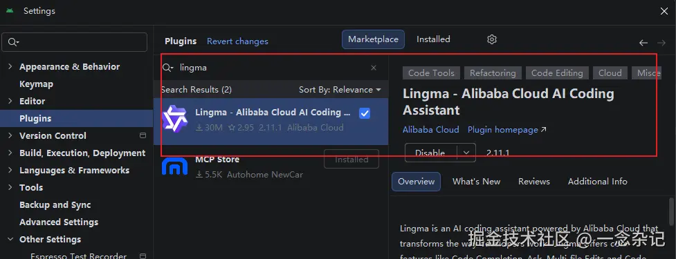 在File->Setting->plugin插件中搜索“lingma”,然后点击install安装即可。