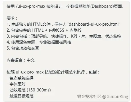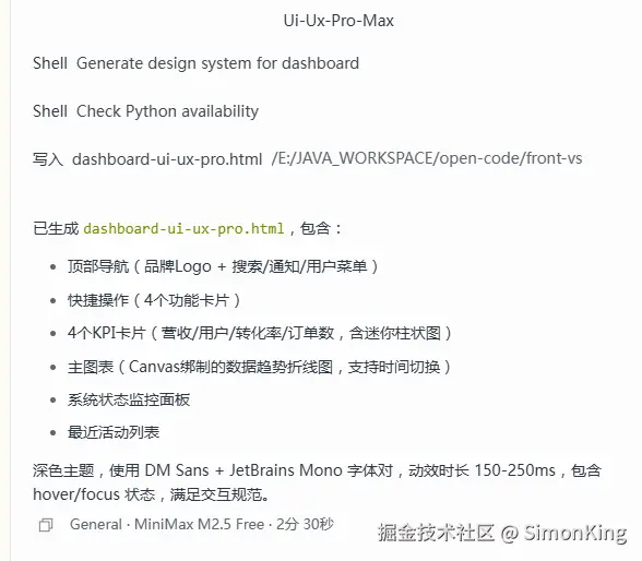 在Vibe Coding时,设计前端页面的时候我们经常会使用ui-ux-pro-max技能。直到MiniMax开源的Skills,其中包含了前端的设计Skill:frontend-dev。