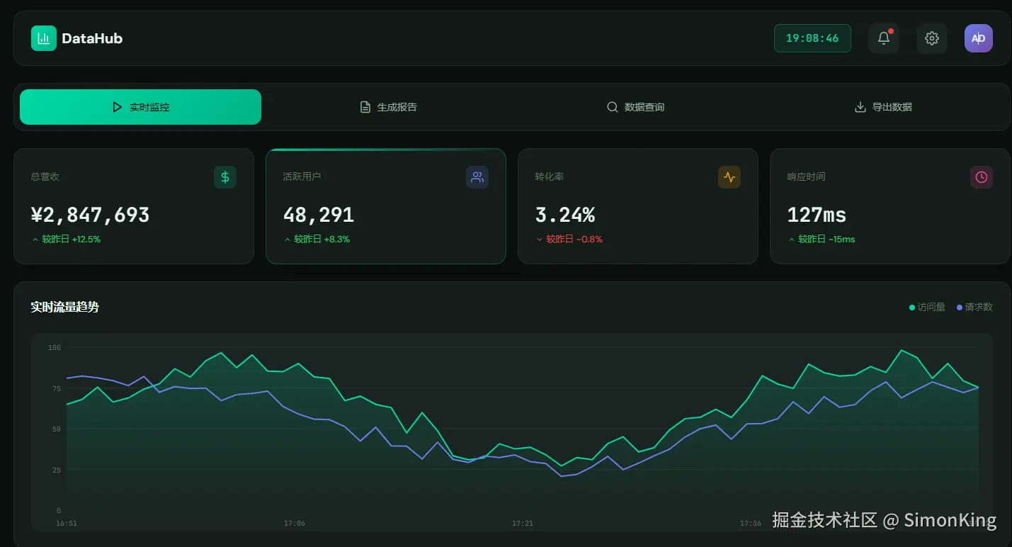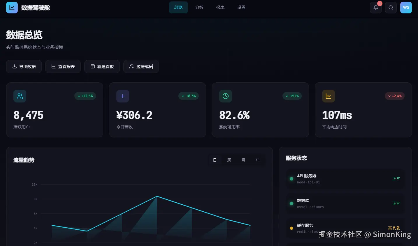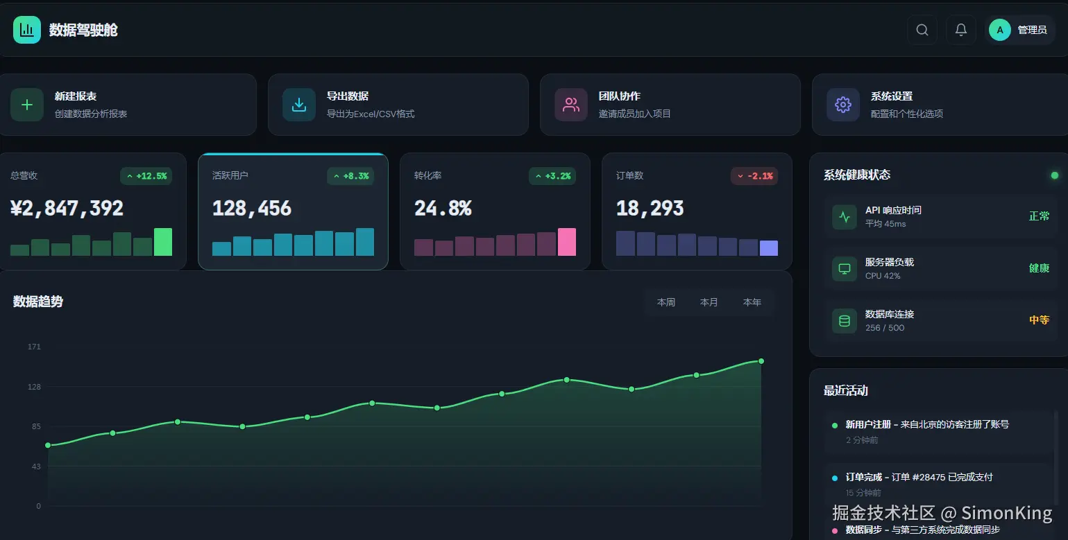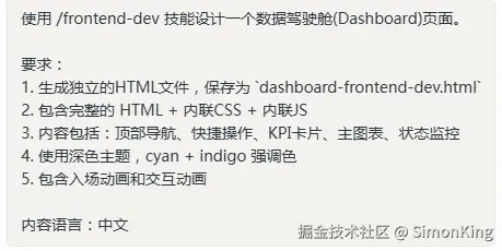 结合 /frontend-dev 和 /ui-ux-pro-max 两个技能的精华,设计一个数据驾驶舱(Dashboard)页面。