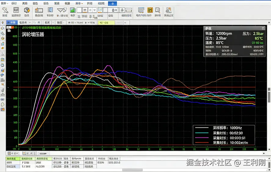 基于 LabVIEW 开发的测试台,实现涡轮增压器全参数自动化测试,单台测试周期稳定在 70 秒左右,测试精度与重复性满足出厂检验要求。图形化架构便于功能扩展,可快速新增测试项、优化判据算法,适配不同型号产品测试需求。系统替代人工读数与记录,消除人为误差,提升测试一致性与可靠性,为产品质量管控提供稳定支撑。当前方案可进一步优化通信速率与信号处理算法,提升高速工况下的测试稳定性,拓展多工位并行测试能力,适配更高效率的生产测试场景。