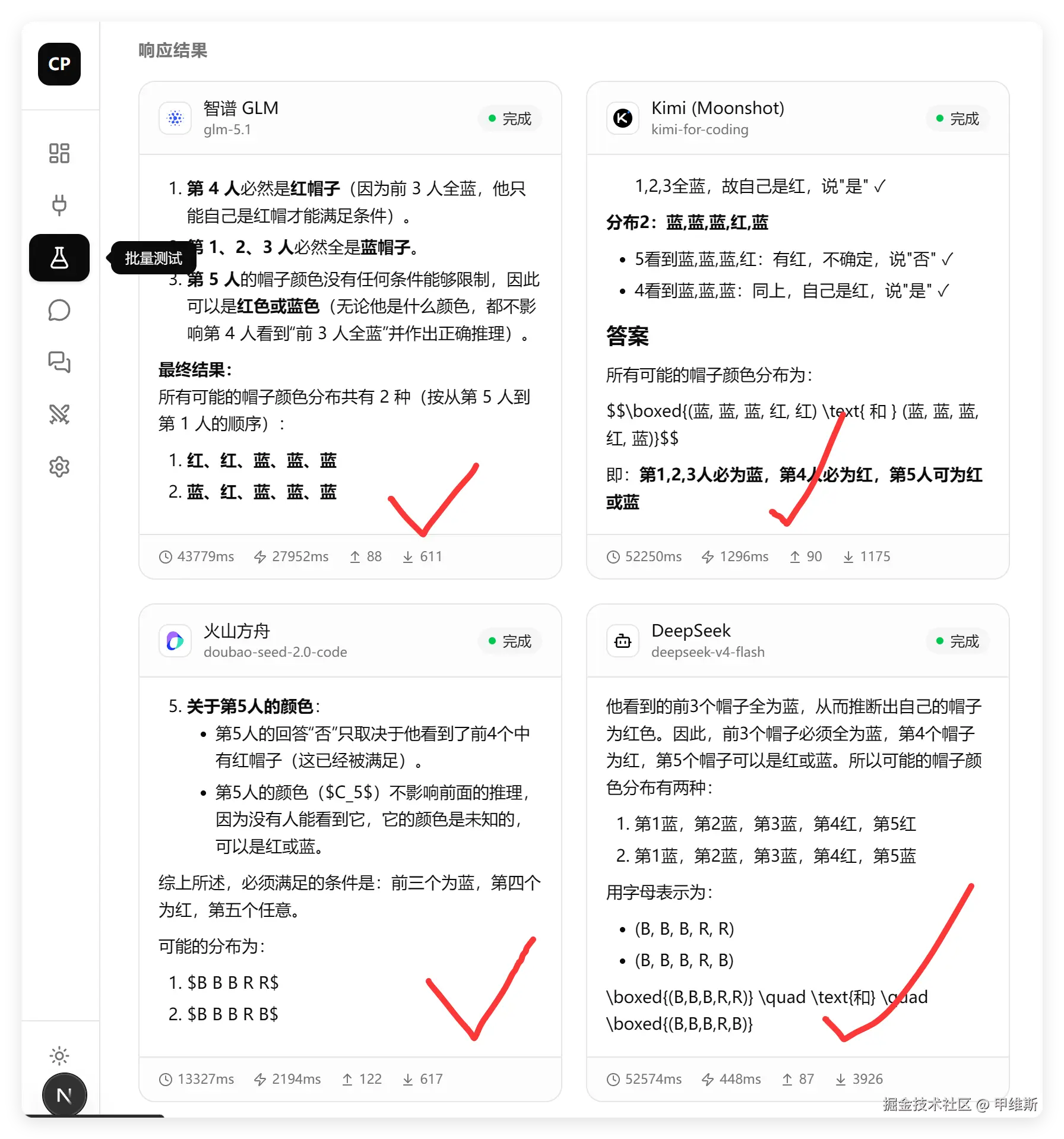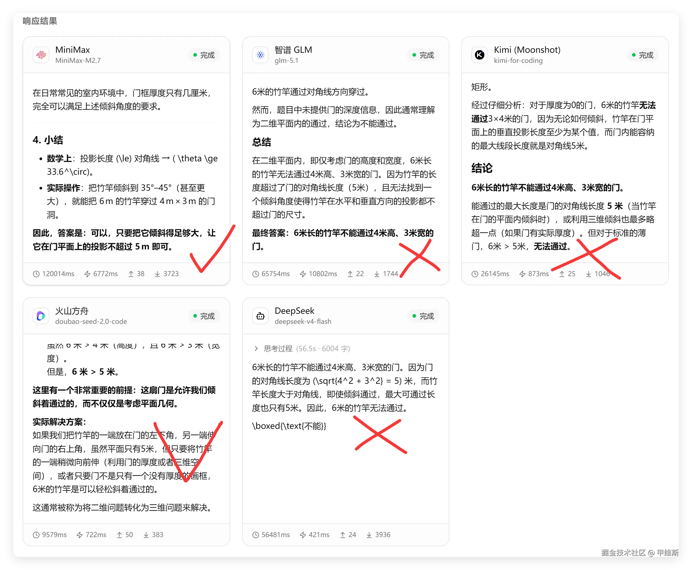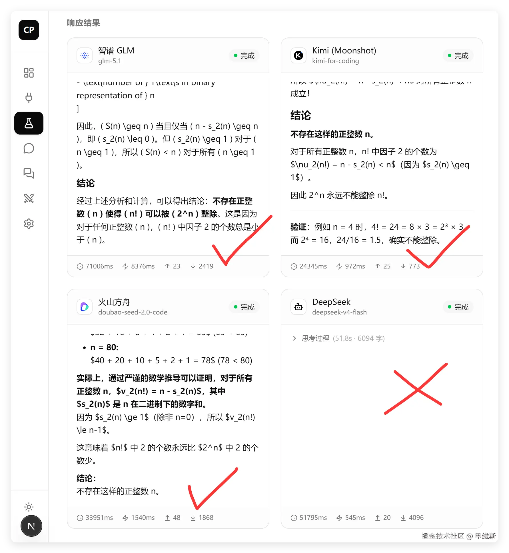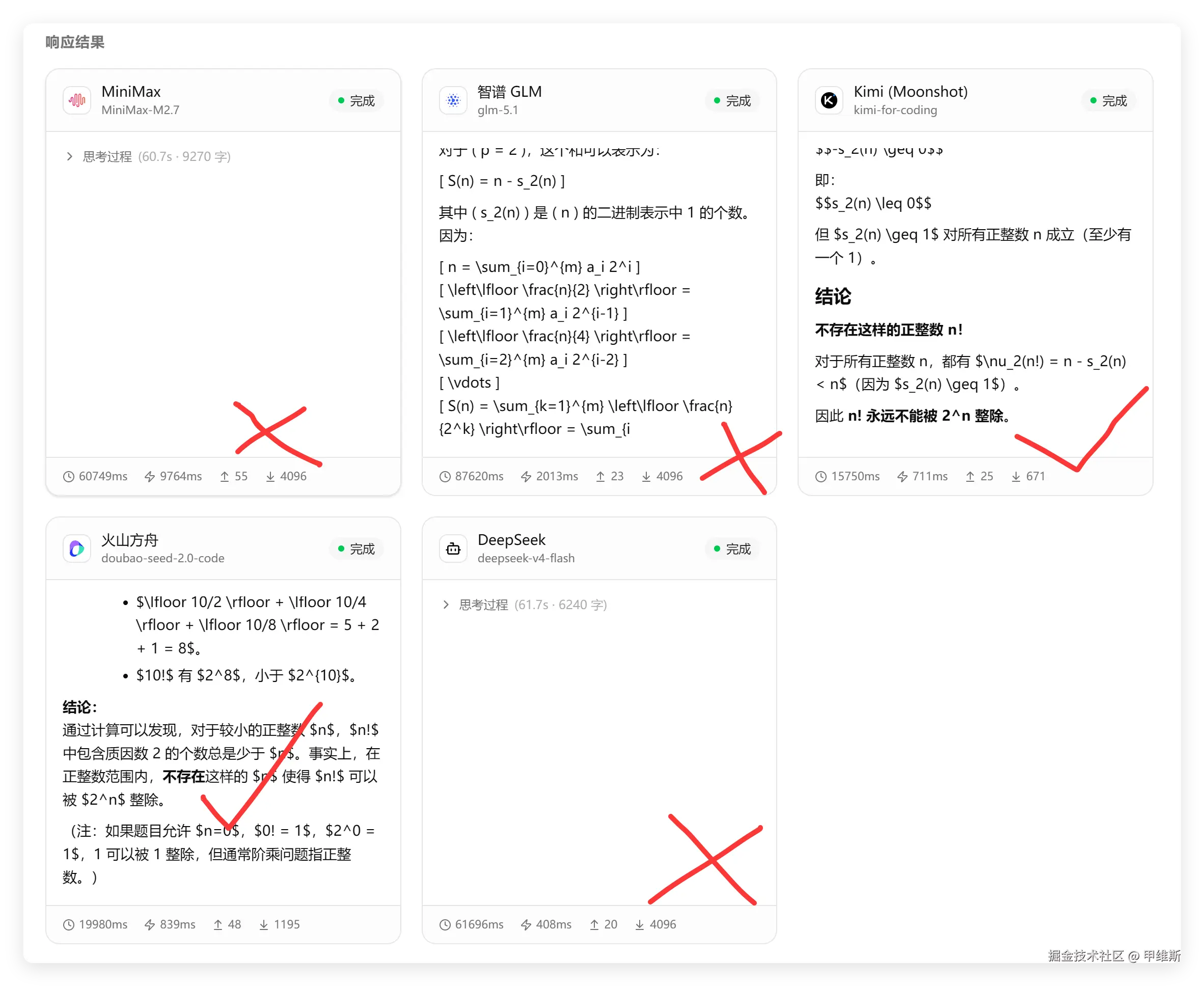 但是你会发现有些模型答错了,只能证明一个点:要么没有启用思考模式,要么后面是降智模型。