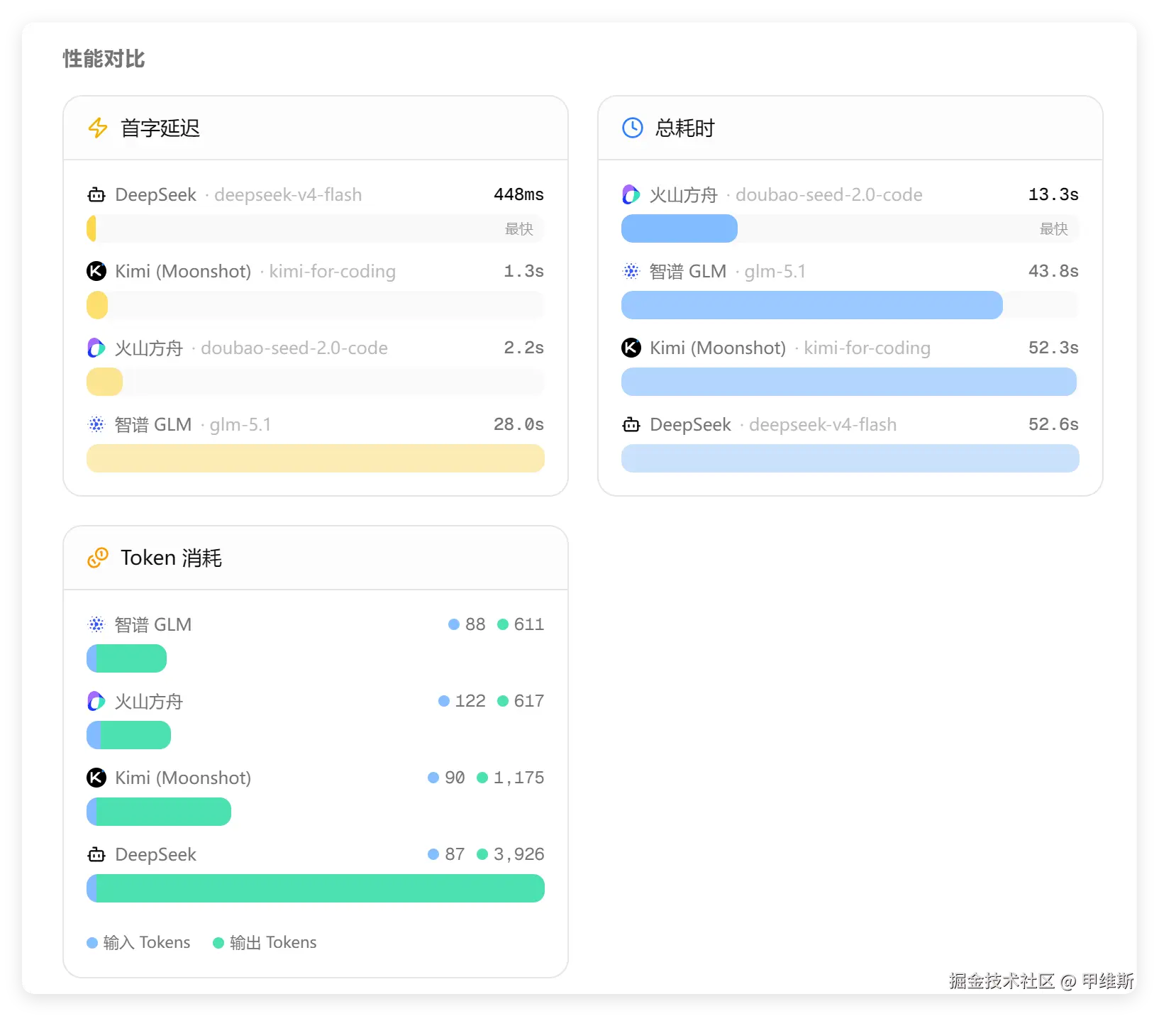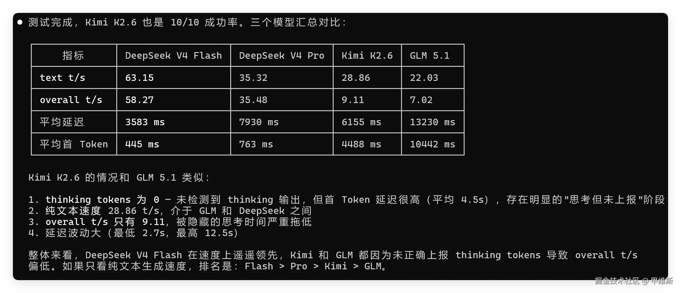如果只看纯文本生成速度,排名是:Flash > Pro > Kimi > GLM。