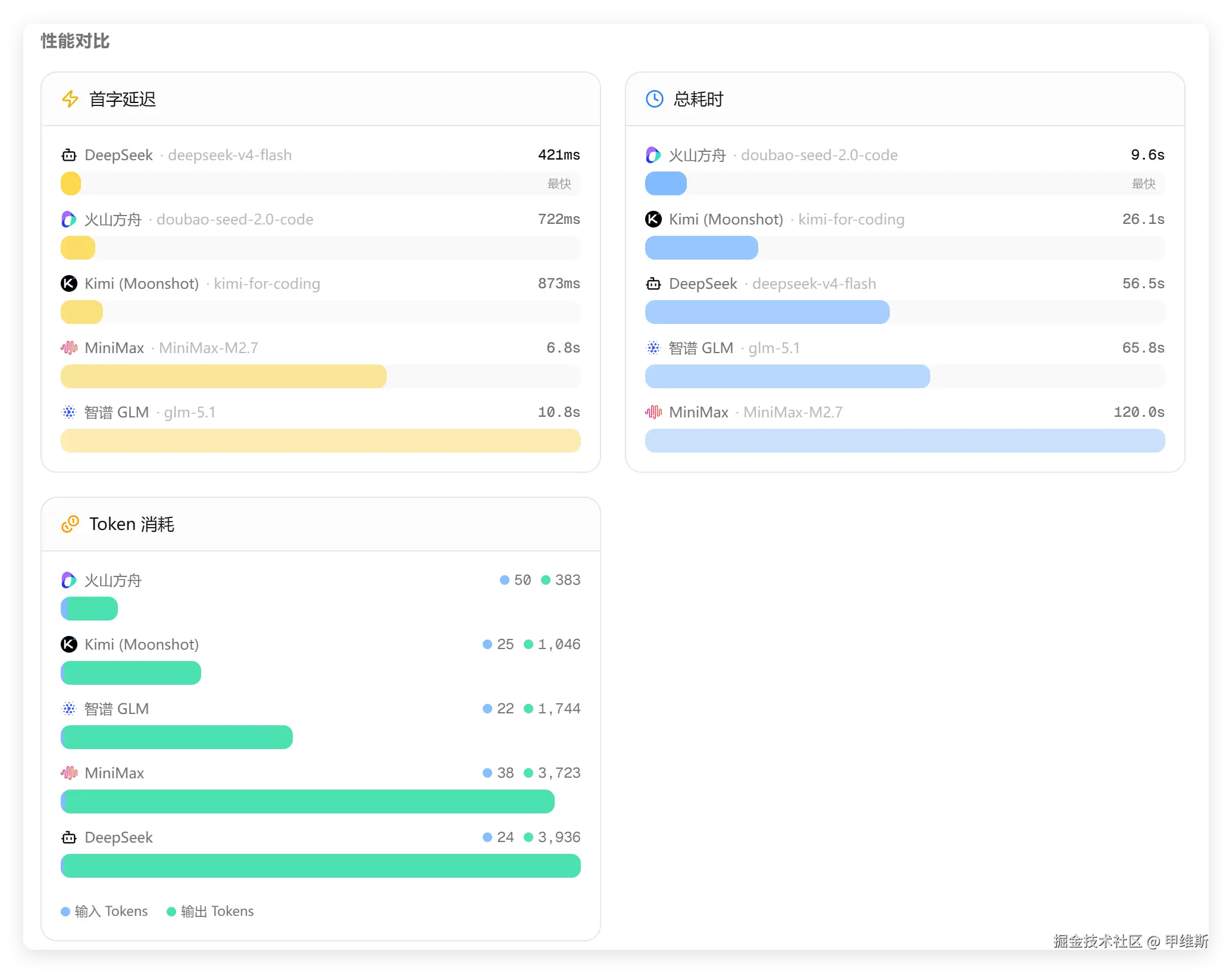 整体来看,DeepSeek V4 Flash 在速度上遥遥领先。