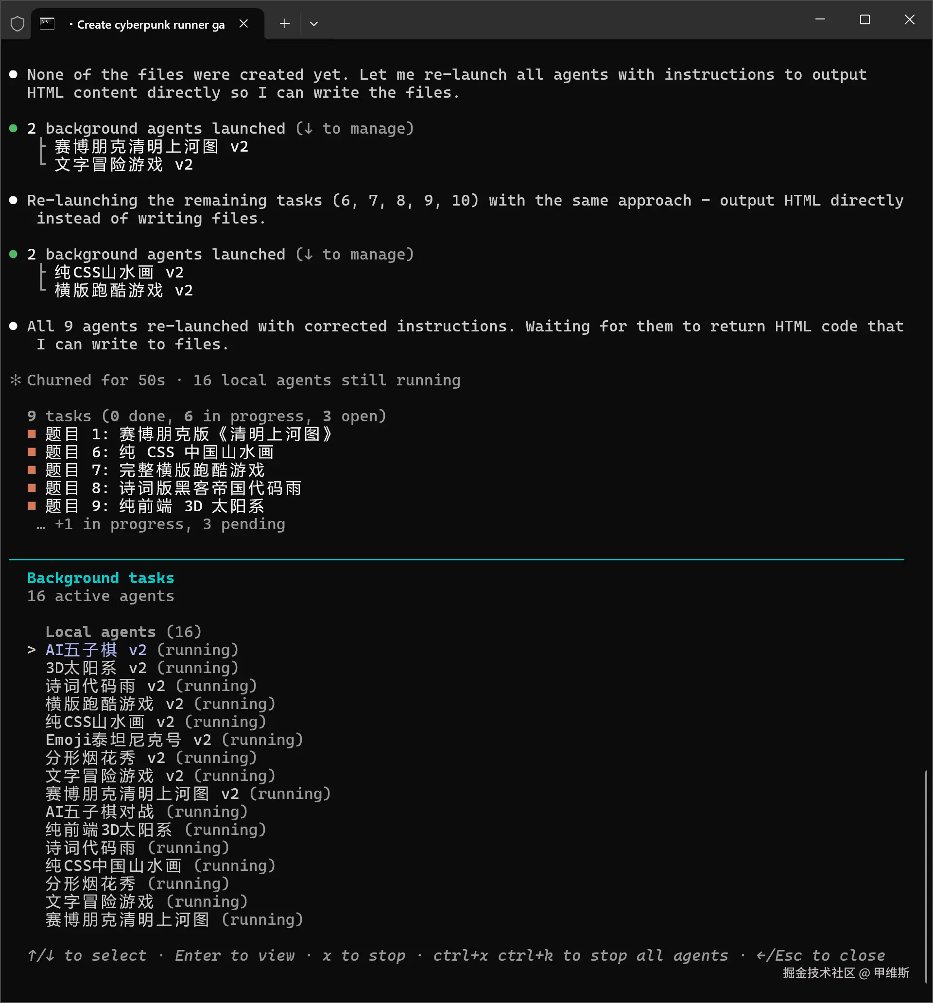因为正常是 9 个例子,它却开了 16 个代理,其中有大量重复的任务。