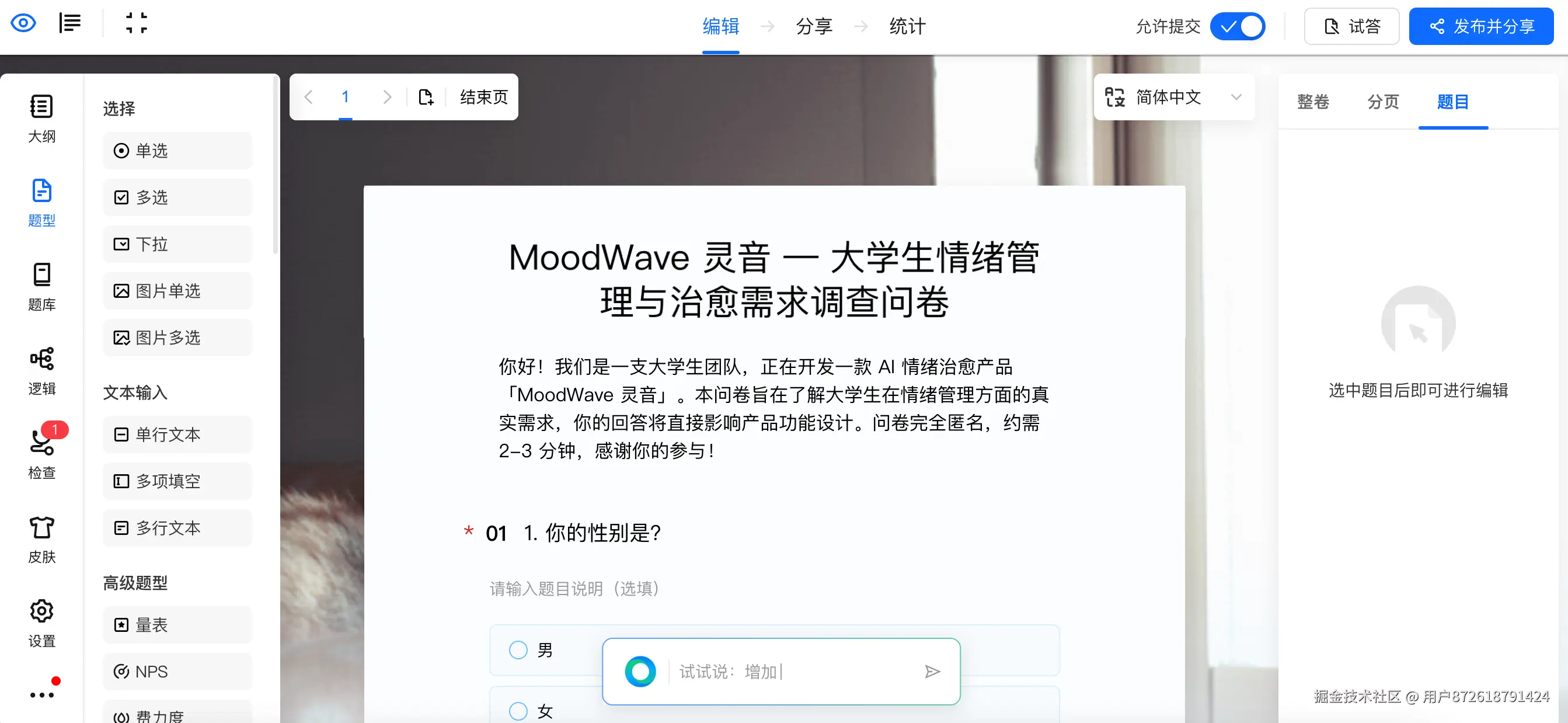第三步:一句话,AI 帮你建好整份问卷