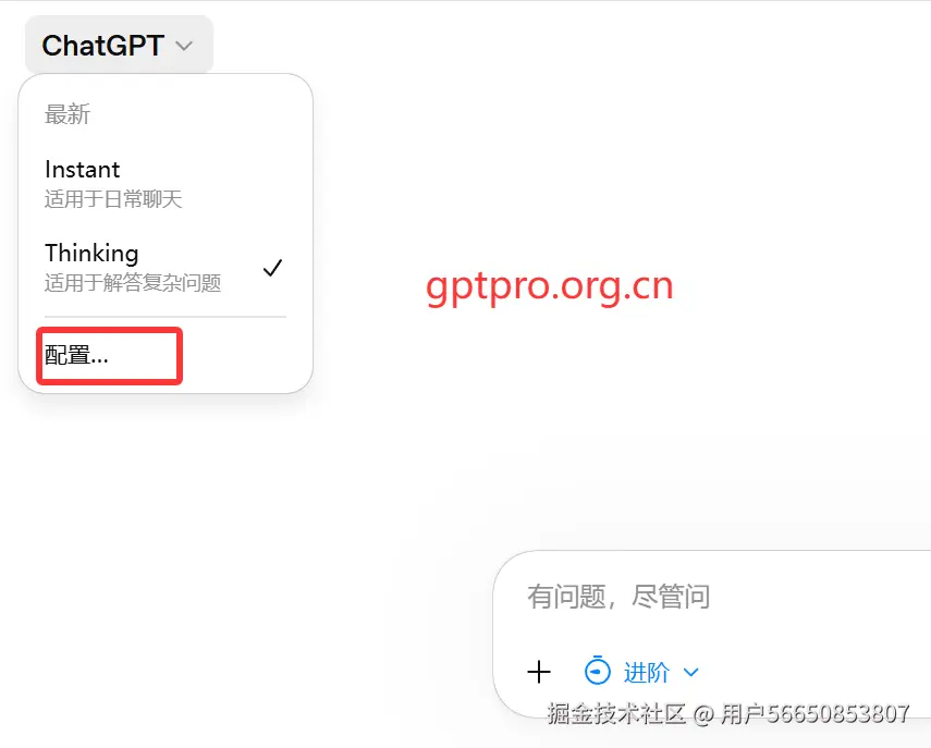 进入对话界面后,在顶部模型下拉菜单中进行配置: