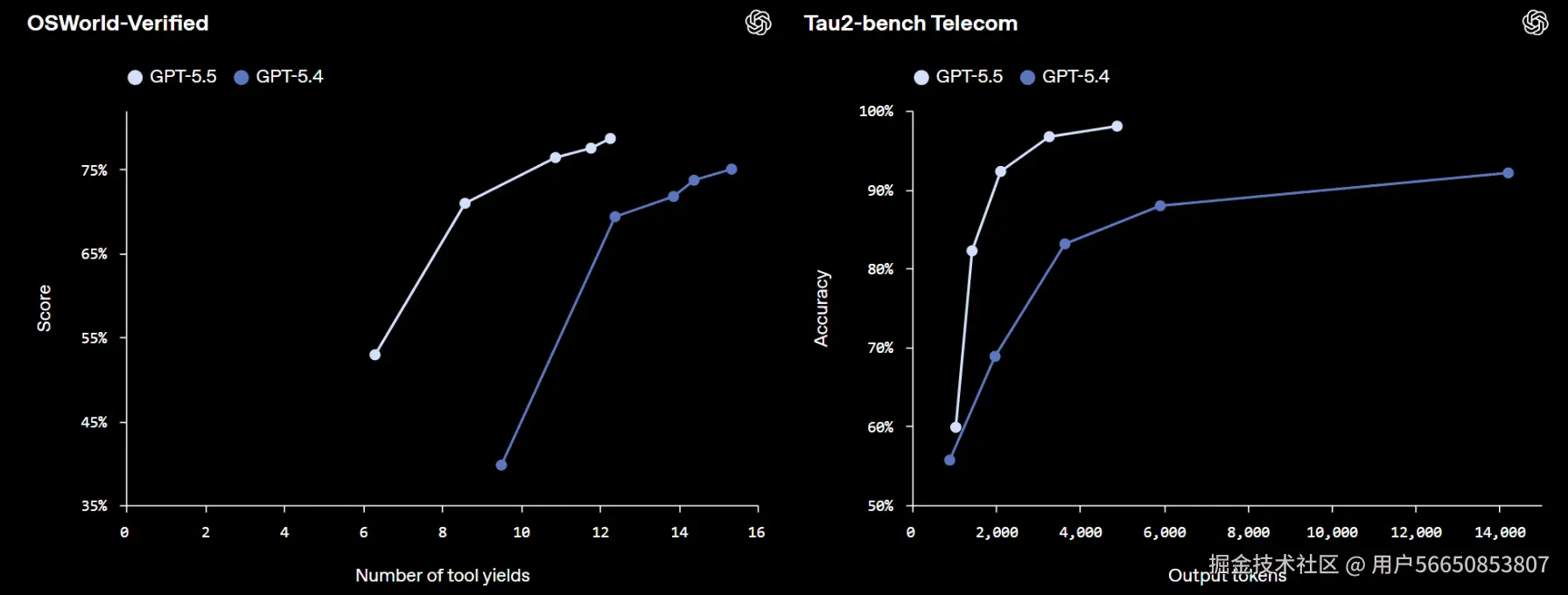 互有胜负。GPT-5.5 在智能体编程(Terminal-Bench)和逻辑推理(FrontierMath)上占据统治地位;而 Claude Opus 4.7 仍在部分文字润色及特定代码解决场景有微弱优势。全生态综合体验上,GPT-5.5 更为全能。