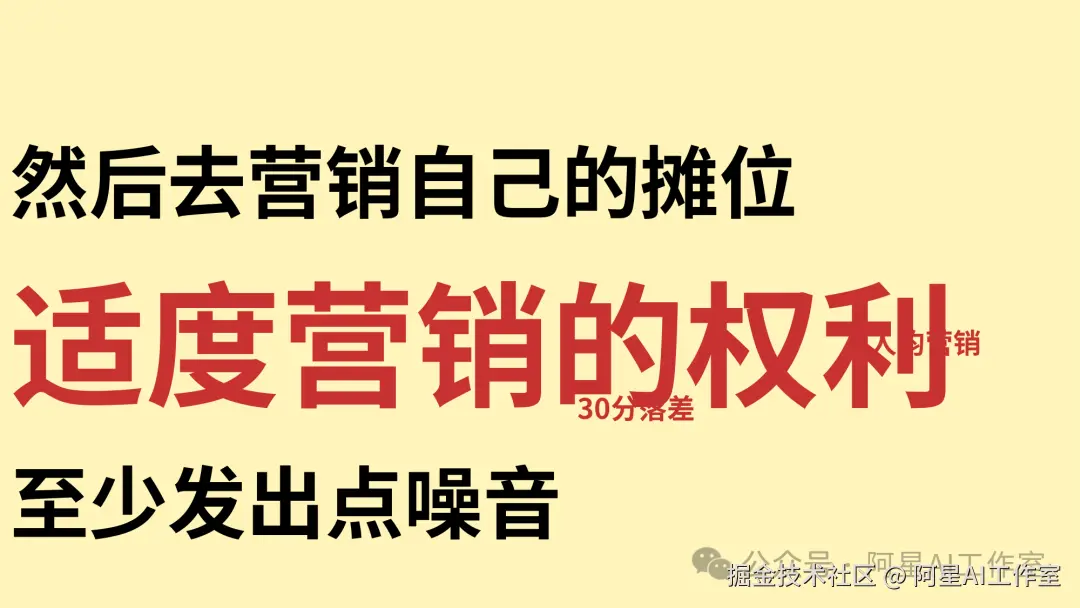 然后就是营销自己的摊位。很多人天然抗拒营销,觉得营销很丢人,但你去看现在那些大的 KOL,哪个不是人均营销?一个大 KOL 在另一个大 KOL 那里购买流量也很常见啊。不偷不抢不犯法。