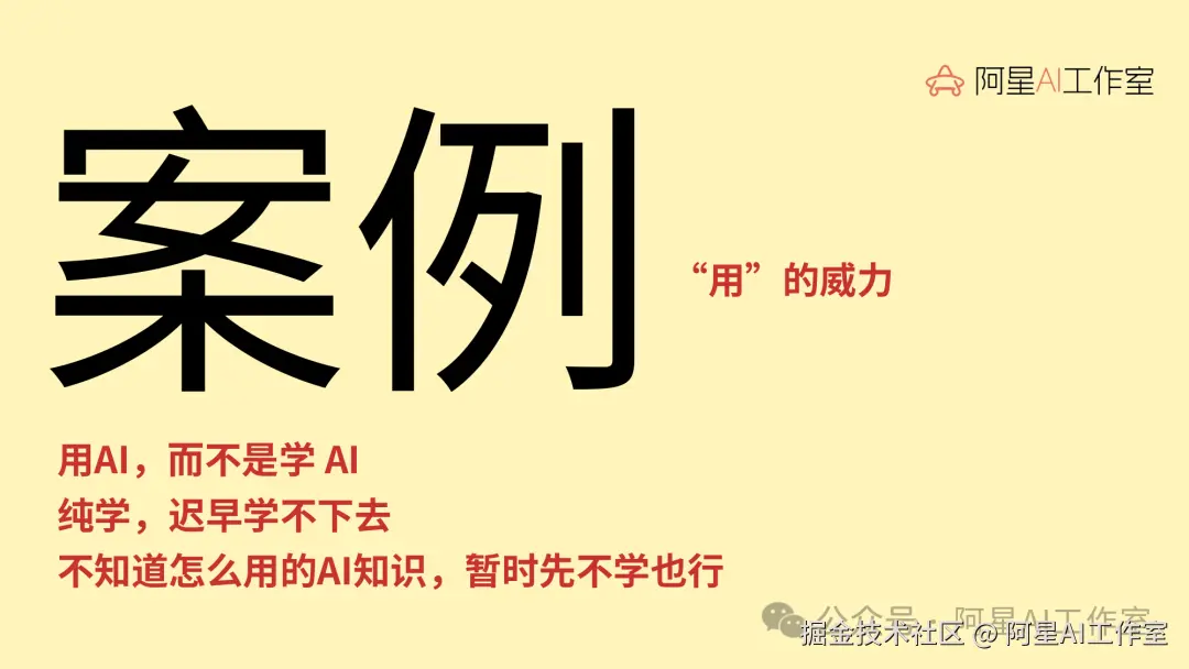 所以我后来跟别人讲的核心就是:普通人重点是用 AI,不是学 AI。你要是不准备当 AI 技术专家,没必要跟博士比谁更懂底层原理。你真正该放注意力的地方,是你能不能用 AI 做出东西,能不能把这个东西发出去,能不能让别人看懂。