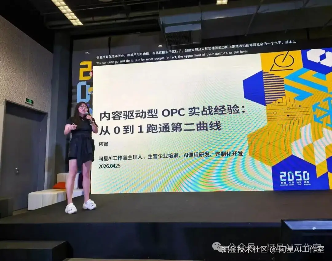 4月25日我在王坚院士发起的2050大会上分享了《内容驱动型 OPC实战经验:从0到1跑通第二曲线》。这次同时也是超越之路社区发起的OPCnight。很多同学还为了我过来,我很感动。