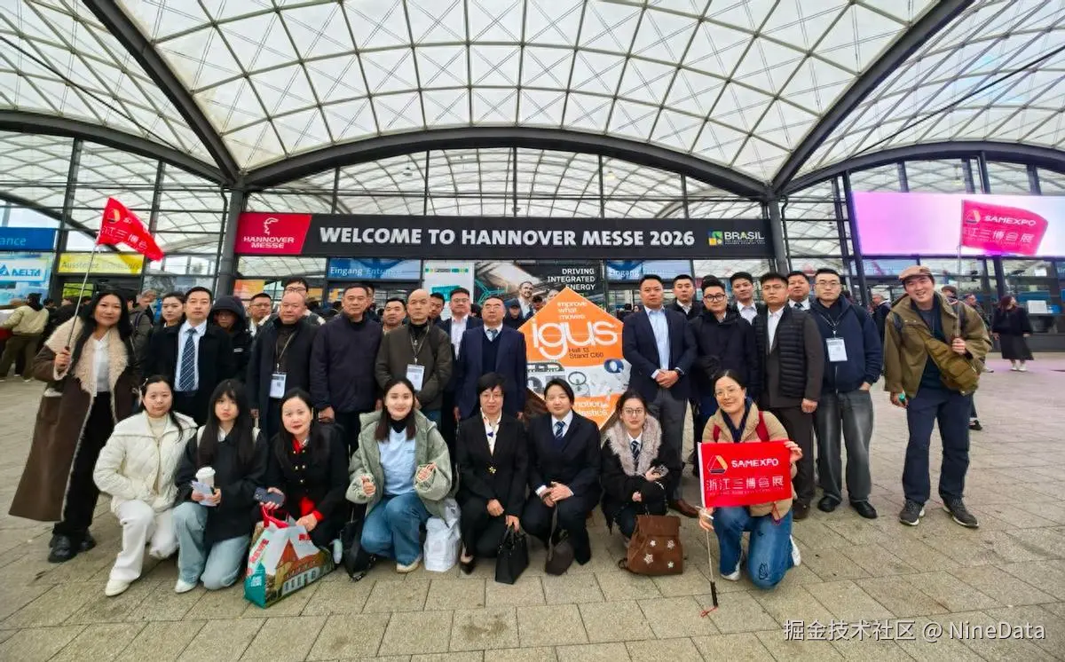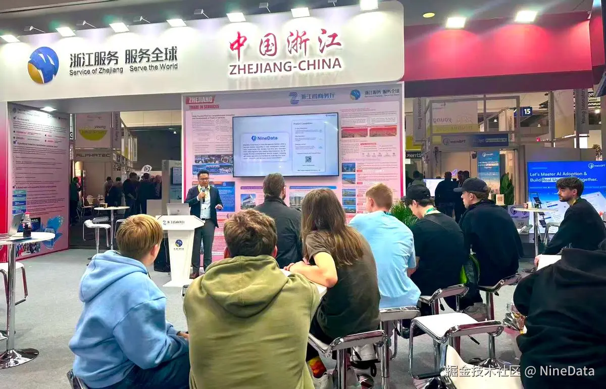 2026 年 4 月 24 日,2026 德国汉诺威工业博览会在汉诺威会展中心顺利闭幕。在浙江省商务厅组织下,NineData 作为浙江参展企业代表亮相“2026 浙江服务贸易(汉诺威)数字生态展”。NineData 面向全球客户、合作伙伴及行业观众展示企业级智能数据管理平台的核心能力,充分展现了中国数据技术企业在国际上的创新实力。