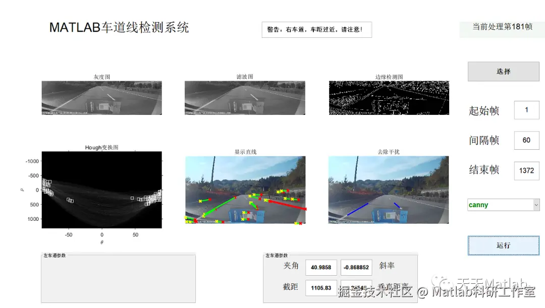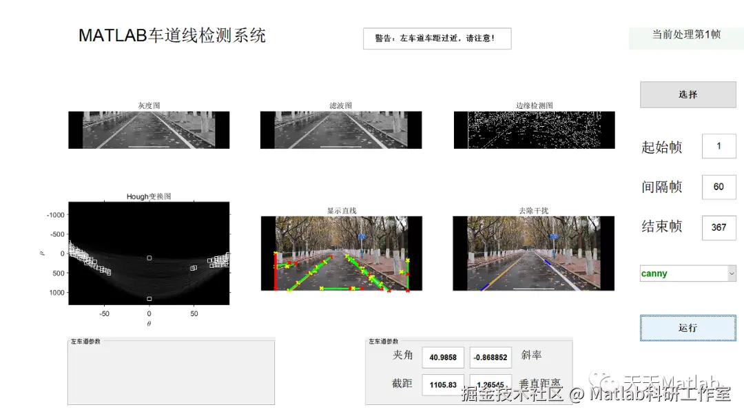 【车道检测】基于帧差法结合hough实现车道检测含播报声音附GUI界面