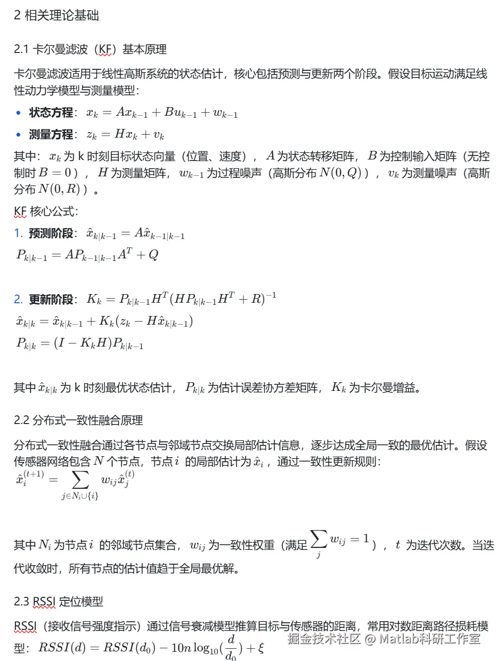 数据预处理:对各传感器采集的位置 / RSSI 数据进行异常值剔除、时间同步、坐标统一,输出标准化测量数据;