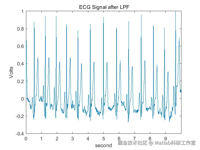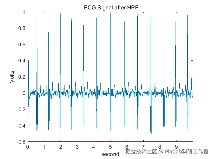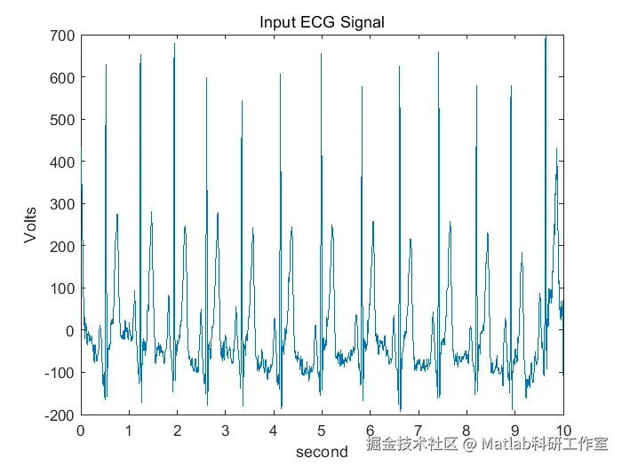 该 MATLAB 代码实现了心电信号(Electrocardiogram, ECG)的完整处理流程,核心目标是从原始 ECG 数据中精准提取关键生理指标,为心血管健康监测提供量化依据。其核心功能包括:
