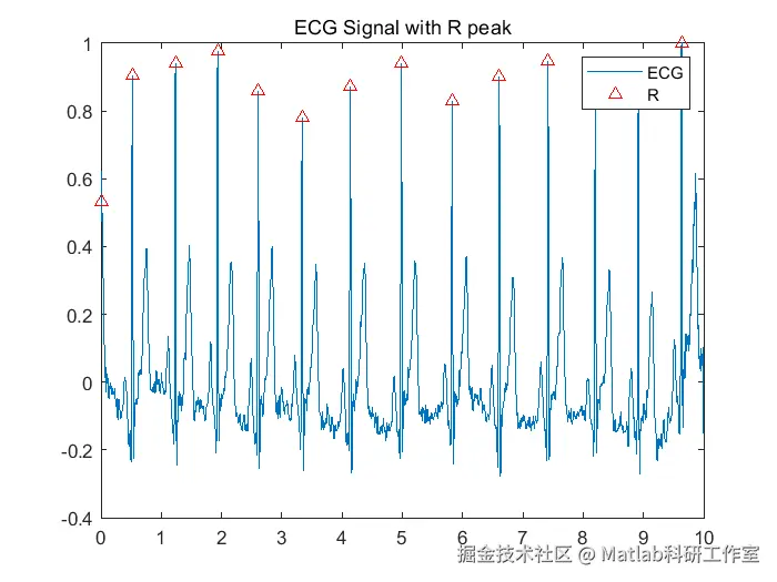 R 波峰值检测(ECG 信号中最显著的特征波,对应心室除极);